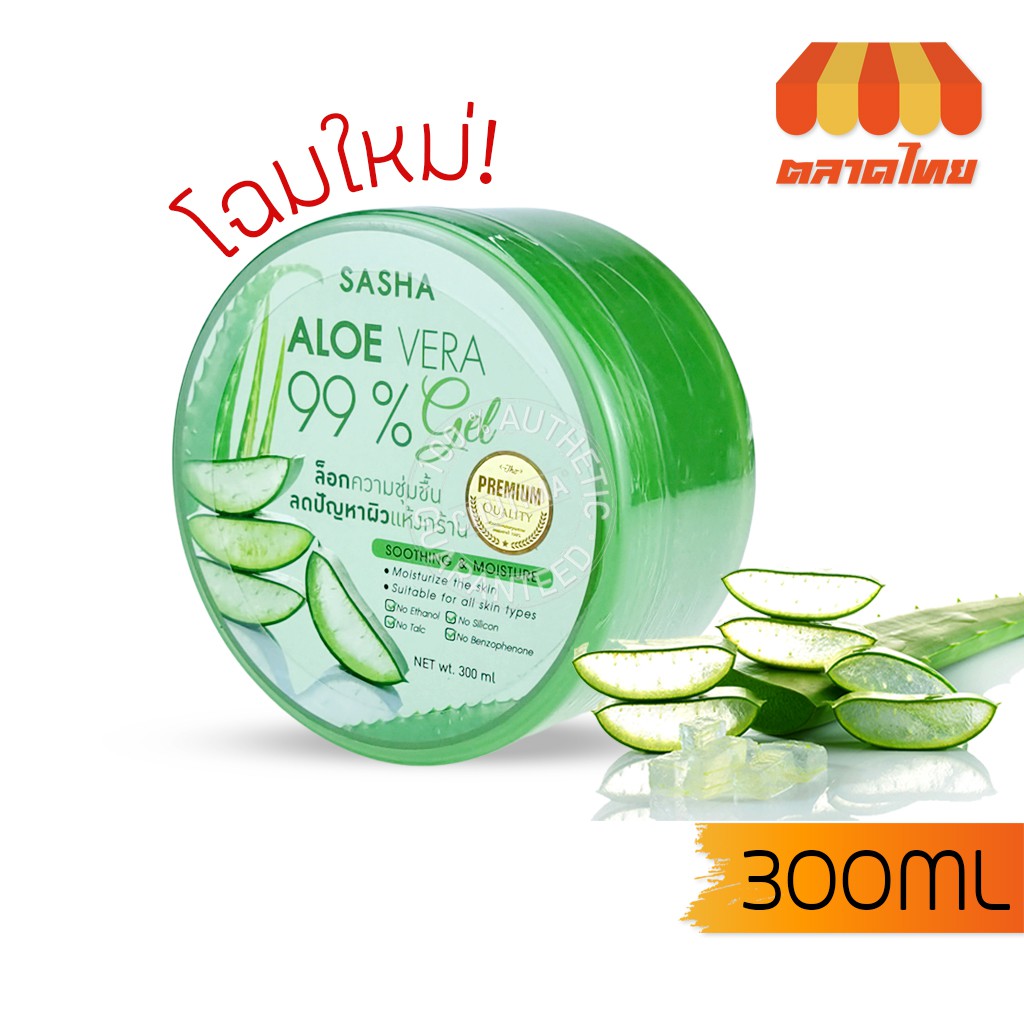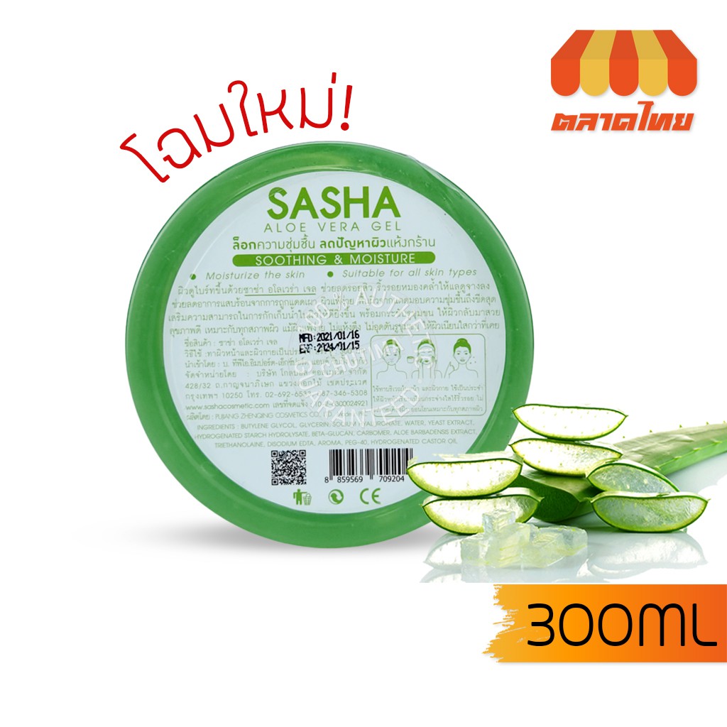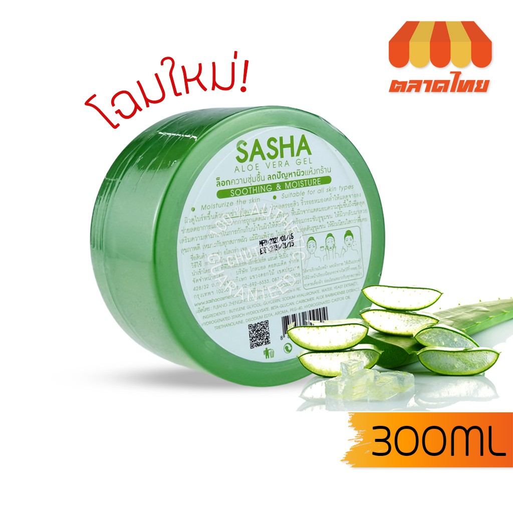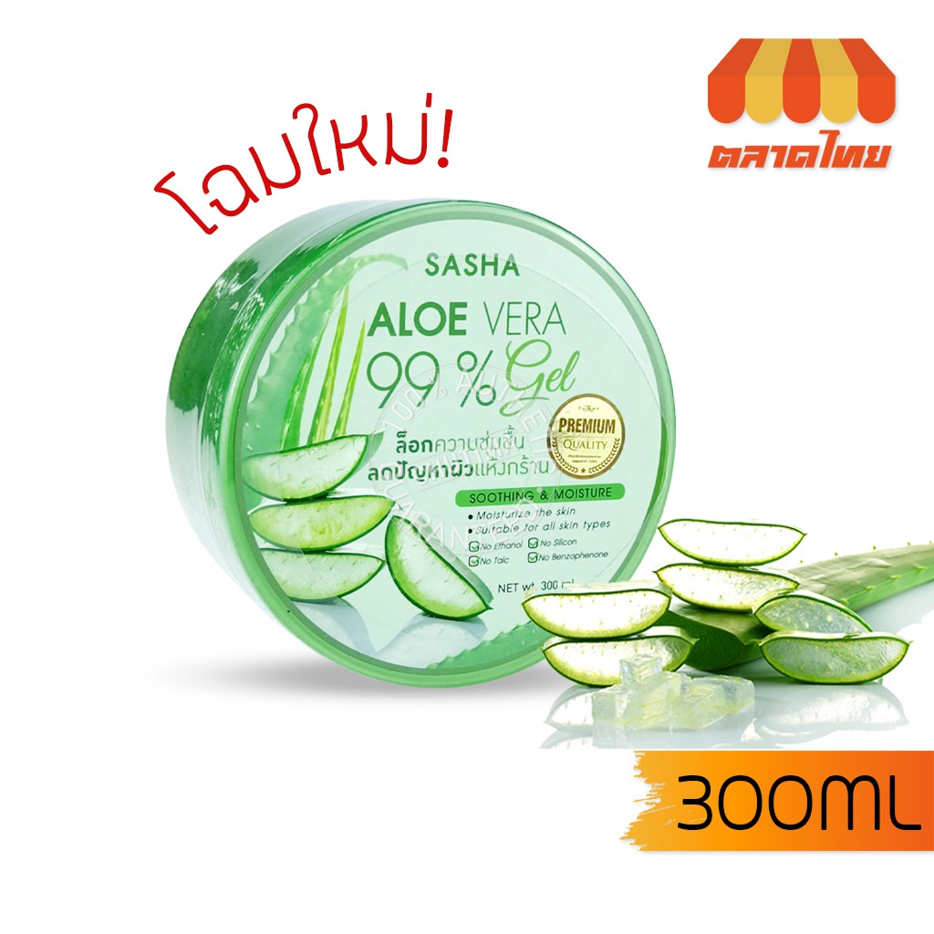 เจลหว่านหางจระเข้ ซาช่า อโลเวร่า เจล Sasha aloe vera 99% Soothing&Moisture 300 ml.