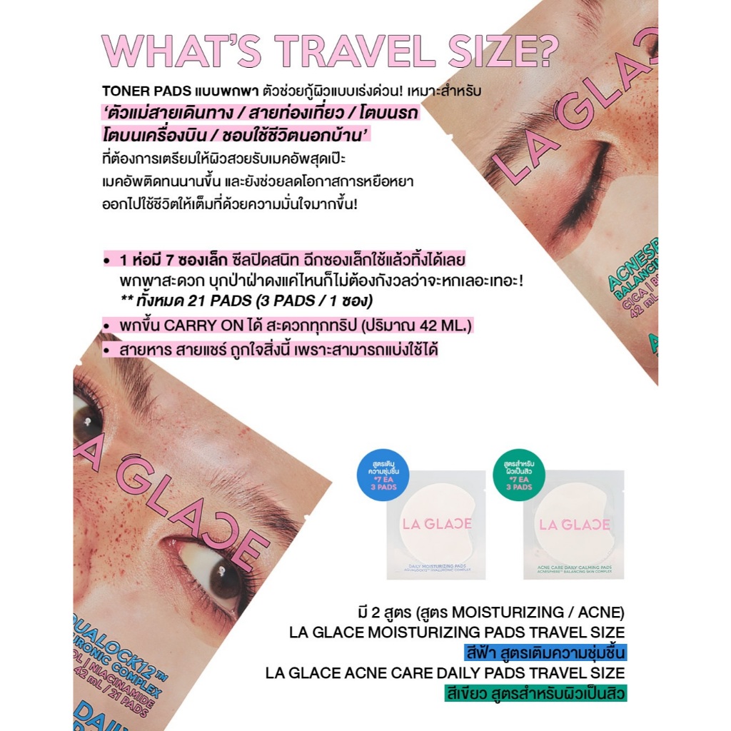LA GLACE DAILY PADS TRAVEL SIZE | โทนเนอร์แพดลากลาสแบบพกพา มี2สูตร โทนเนอร์แพด ใช้ง่าย พกได้ทุกที่