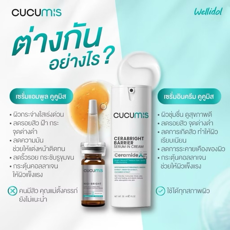 Wellveness CUCUMIS เซตคู่หน้าไบร์ท แอมพลูเซรั่ม และเซราไบร์ท เซรั่มอินครีม เวลวีเนส ผิวหน้ากระจ่างใส แข็งแรง ผิวสุขภาพดี