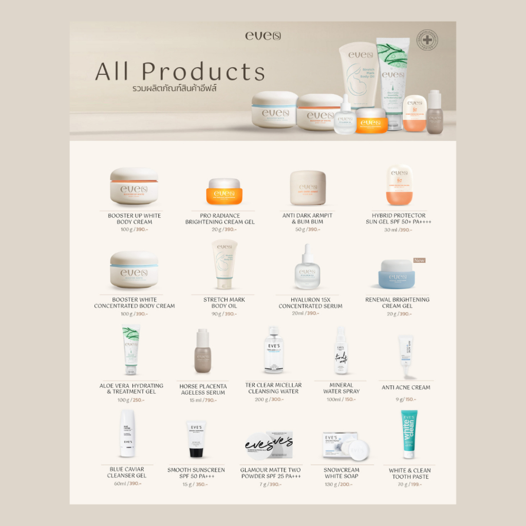 EVES Skin Care ดูแลผิวหน้าผิวกาย ครีมเจล ไฮยา บูสเตอร์ อีฟส์ **ไม่แท้ยินดีคืนเงิน