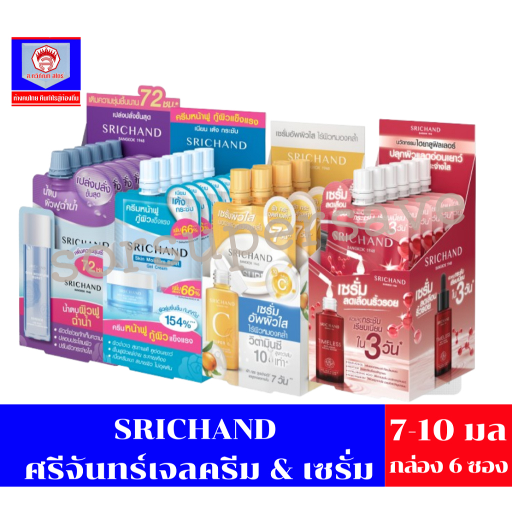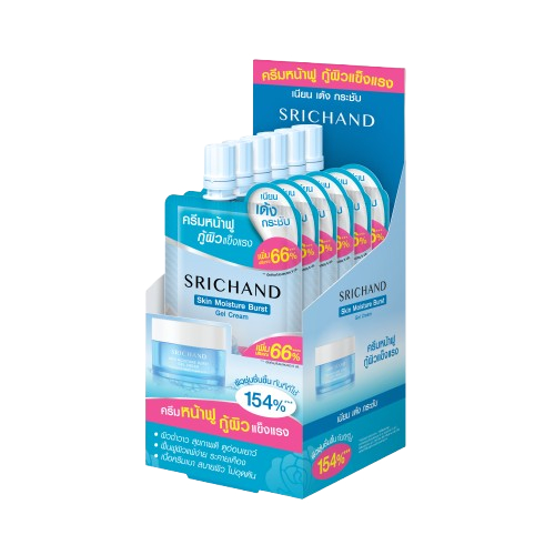 (ยกกล่อง / 6 ซอง) ศรีจันทร์ มอยส์เจอร์ เบิร์ส เจลครีม / ซุปเปอร์ ซี ไบร์ทเทนนิ่ง เซรั่ม Srichand Skin Moisture Burst