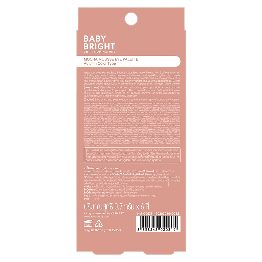 ฺBaby Bright อายพาเลท 0.7g x 6สี เบบี้ไบร์ท