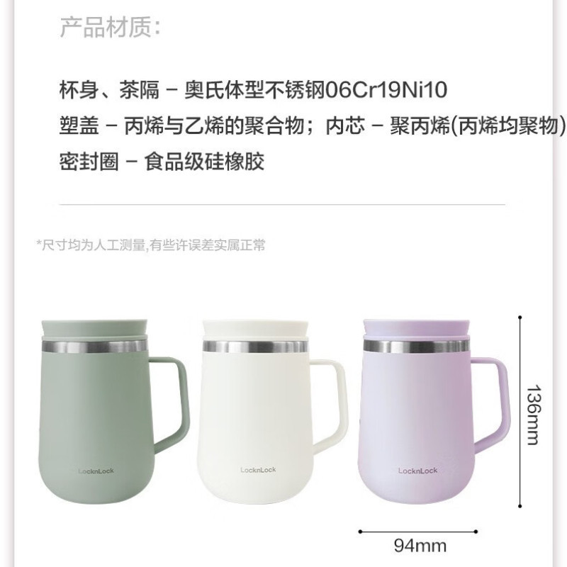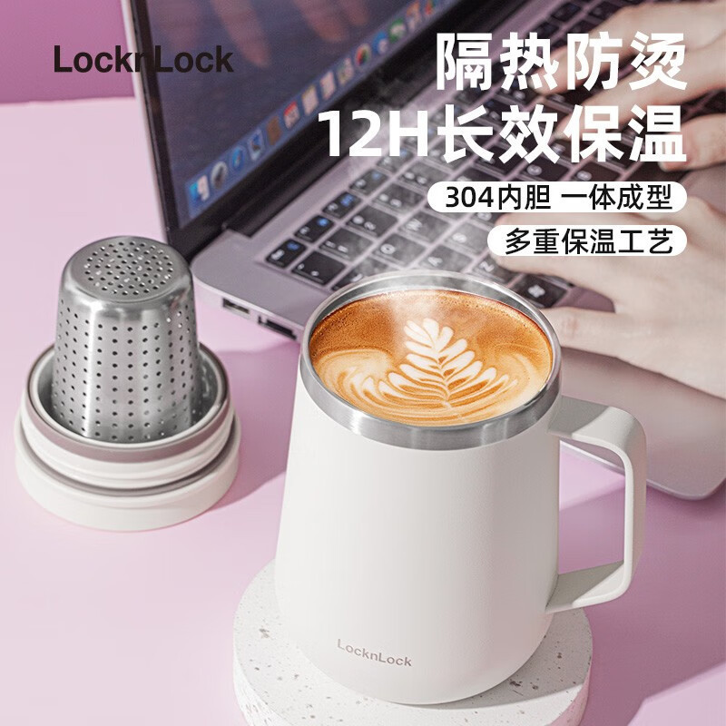 【LUCKY】LocknLock กระติกน้ำร้อนมีหูหิ้ว, ฝาปิด, สแตนเลส 304, ถ้วยกาแฟสำนักงาน, แก้วมัค, เครื่องแยกน้ำชา, ชงชา, ถนอมน้ำแข็ง