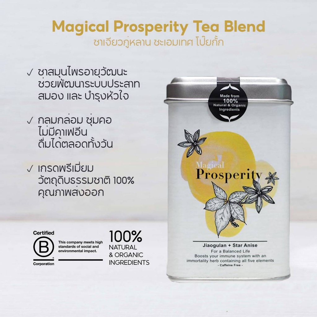Jasberry ชาเจียวกู่หลาน ชะอมเทศ โป๊ยกั๊ก(ไม่มีคาเฟอีน)Magical Prosperity Organic Herbal Tea Blend - White 2g x 8 tea bag