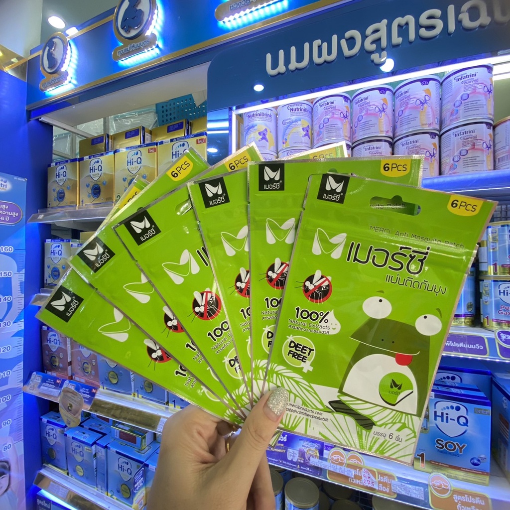 สติกเกอร์กันยุงMerci anti mosquito patch เมอร์ซี่ สติ๊กเกอร์กันยุง ( แพ็ค 6 ซอง ) รวม 36 ดวง