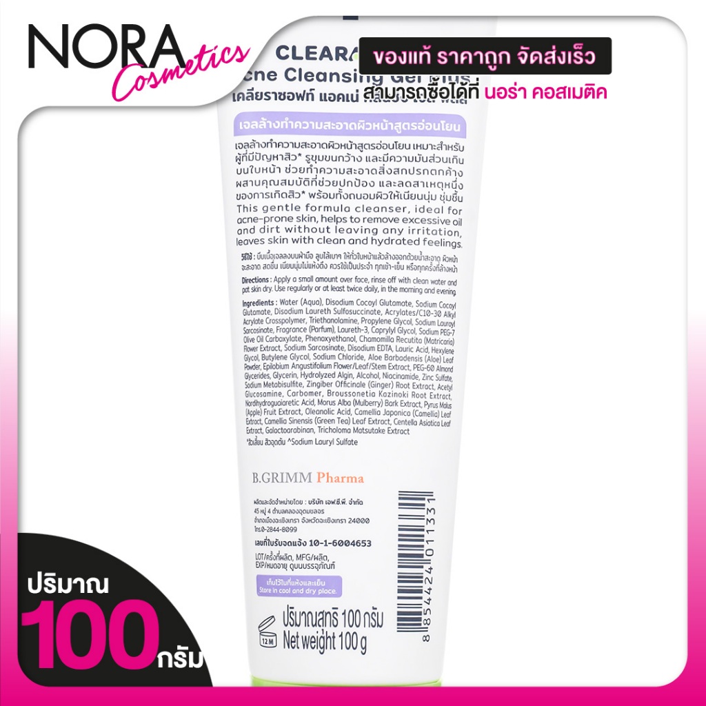 เจลล้างหน้า ClearaSoft Acne Cleansing Gel Plus [100 g.] เจลล้างหน้าลดสิว เจลล้างหน้า