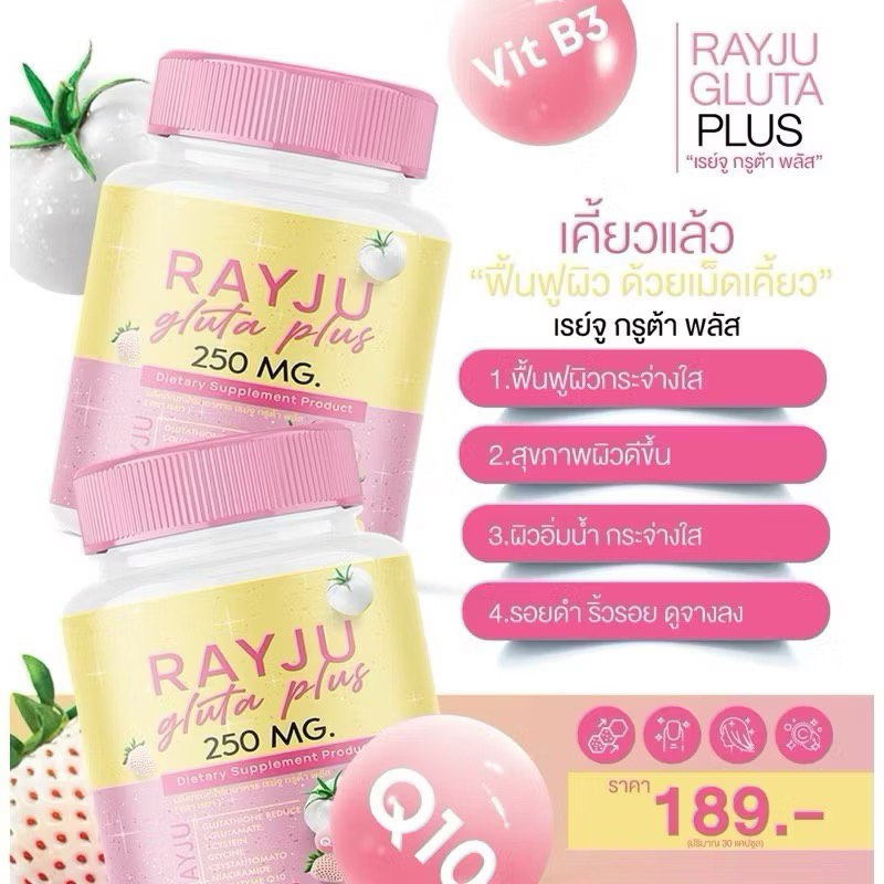 เม็ดเคี้ยวเรจู กลูต้าเรยา RAYJU GLUTA PLUS ขนาด 30เม็ด