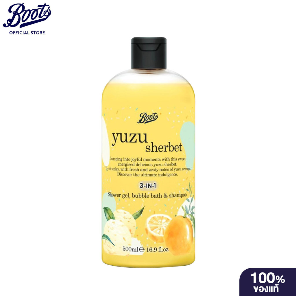 Boots Flavour Yuzu Sherbet Shower Gel Bubble Bath & Shampoo 500Ml บู๊ทส์ เฟเวอร์ ยูสุ บับเบิ้ล บาธ แชมพู
