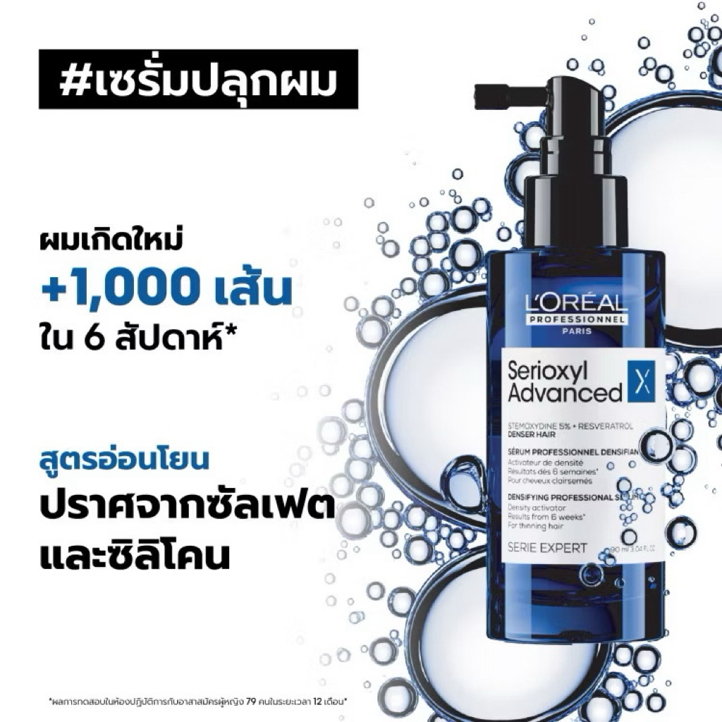 Loreal Serioxyl Advanced Denser Hair Serum 90ml. ลอรีอัล เซรั่ม ปลูกผม ลดผมร่วง ซิริอ๊อกซ์ซิล เด็นเซอร์ แฮร์ บำรุงรากผม