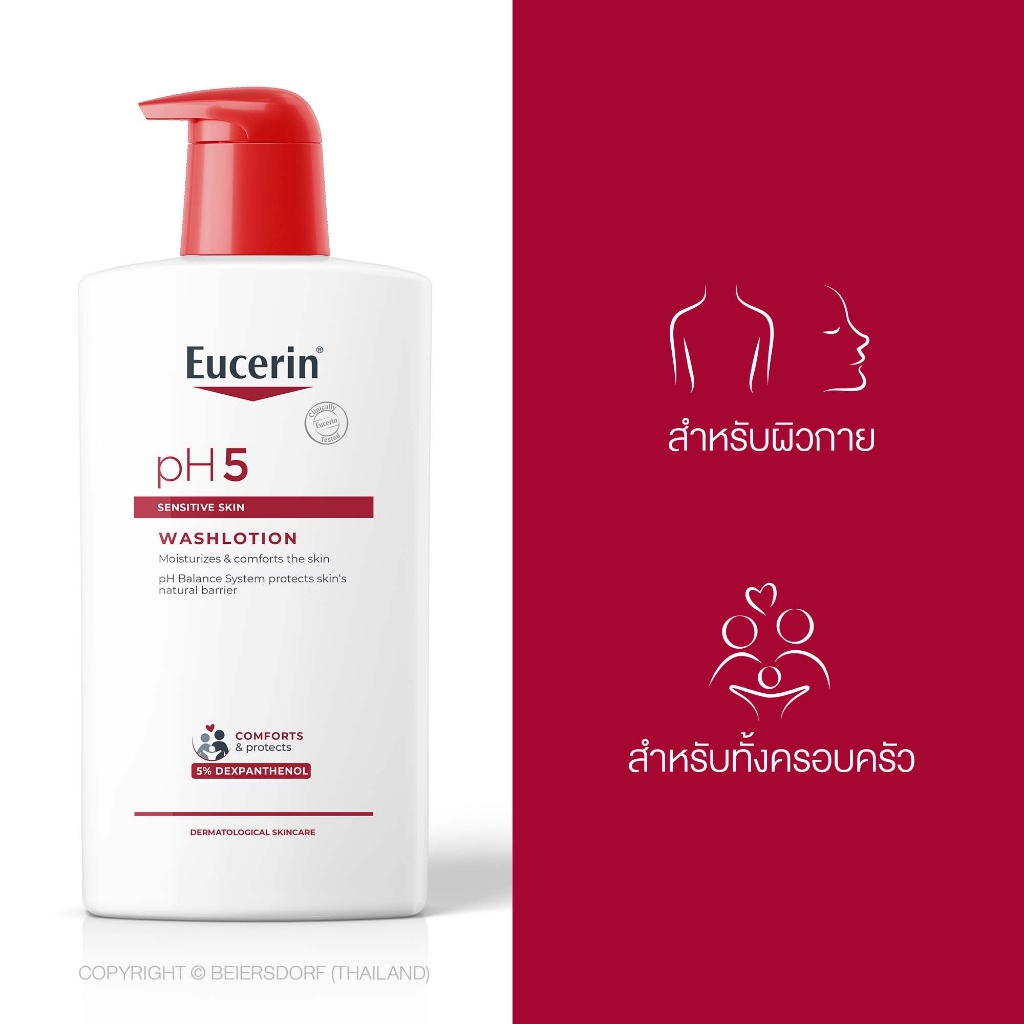 2 ขวด Eucerin pH5 Sensitive Skin Washlotion 1000ml ยูเซอริน พีเอช5 เซ็นซิทีฟ สกิน วอช โลชั่น 1000มล.