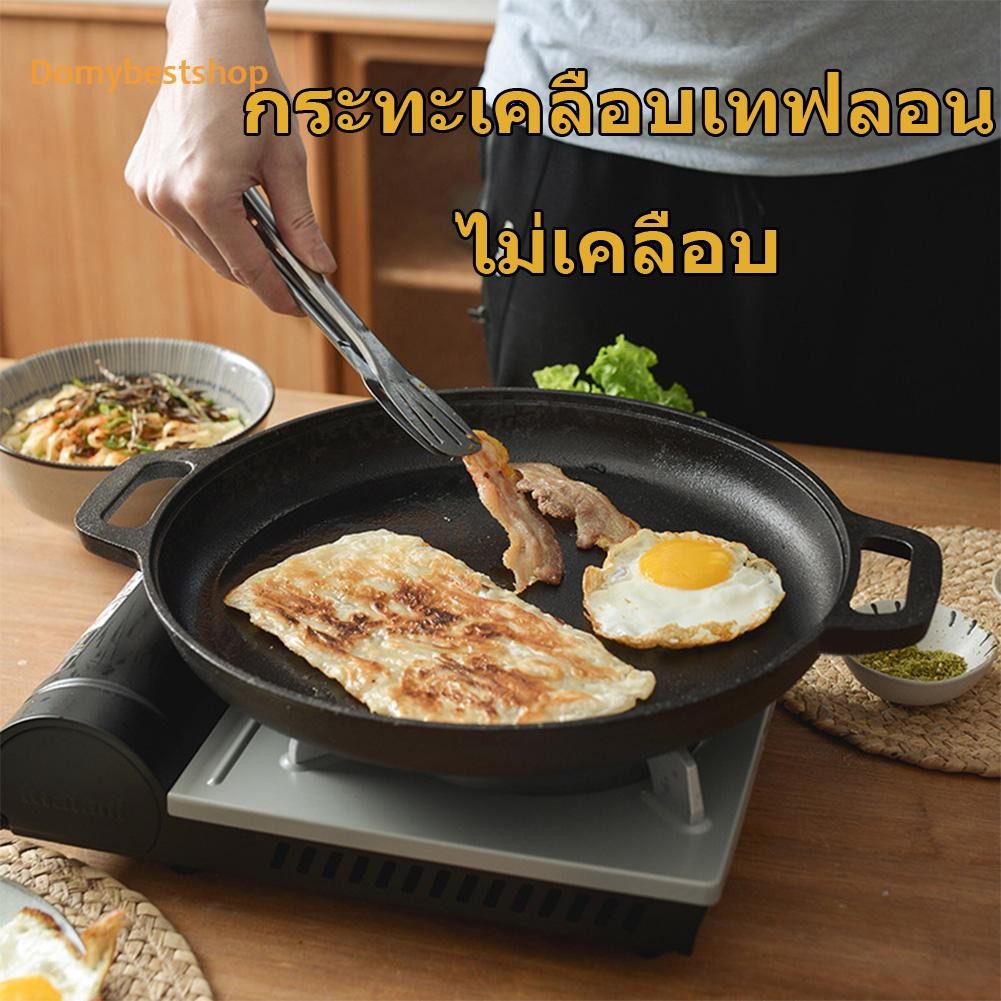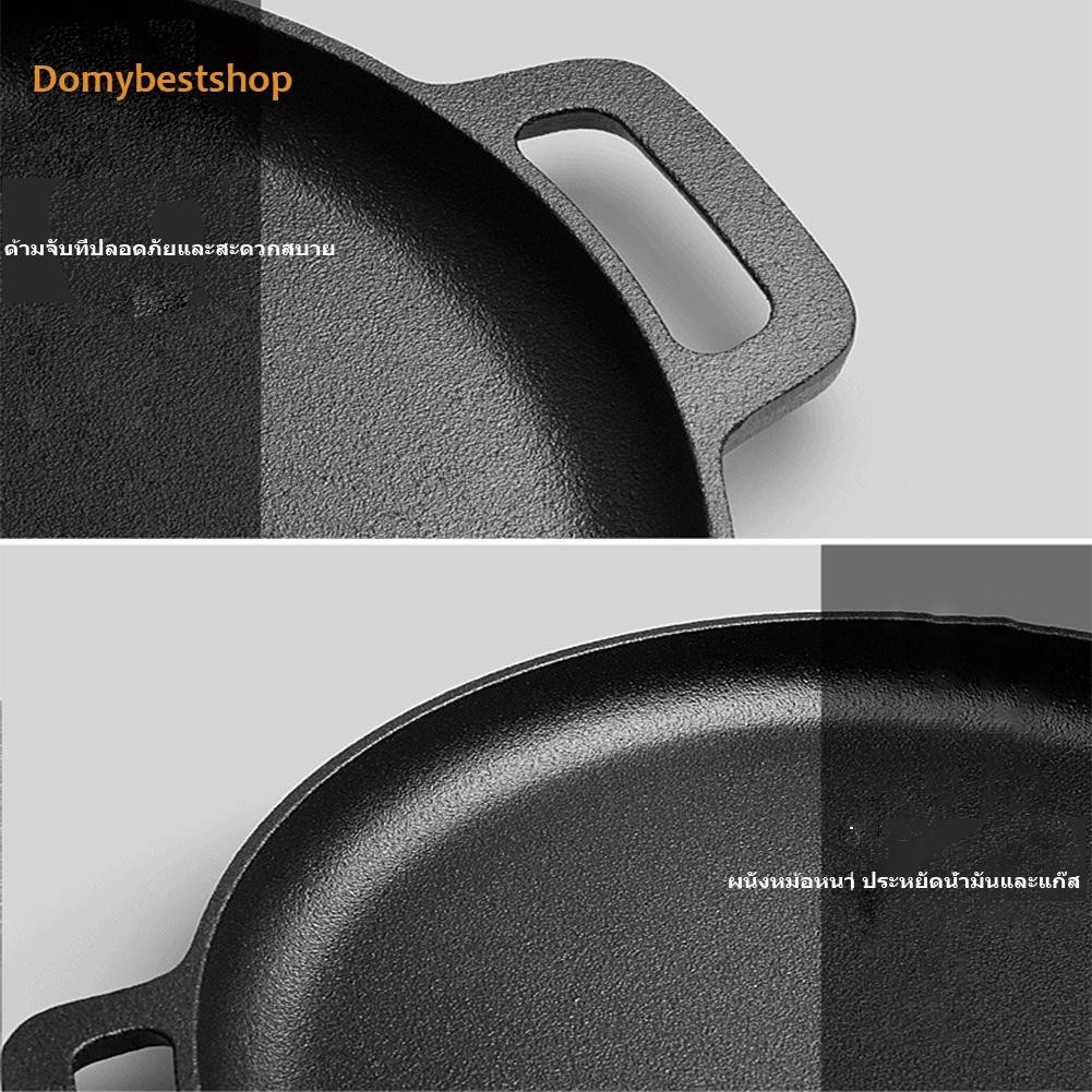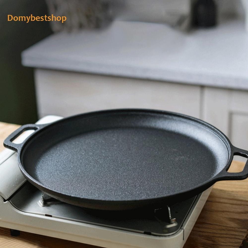 🚚 กระทะเหล็กหล่อ Non-Stick Pancake Pizza Pan สเต็กหมูไก่ทําอาหารหม้อ [Domybestshop.th]