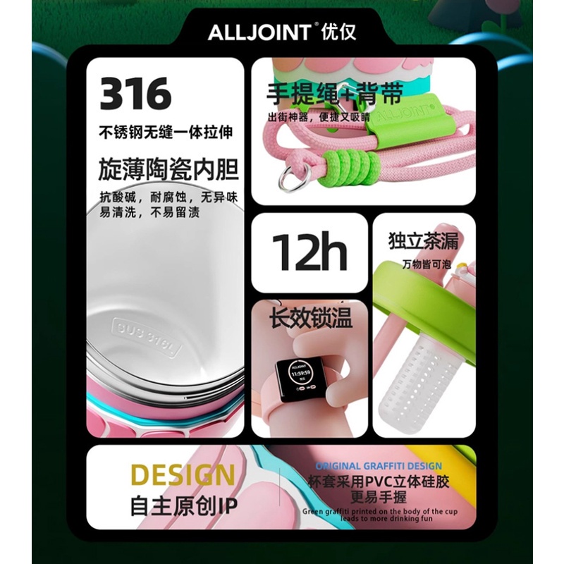 [พร้อมส่ง] Alljoint กระติกน้ําร้อน สเตนเลส 316 แบบพกพา พับเก็บได้ ปากกว้าง