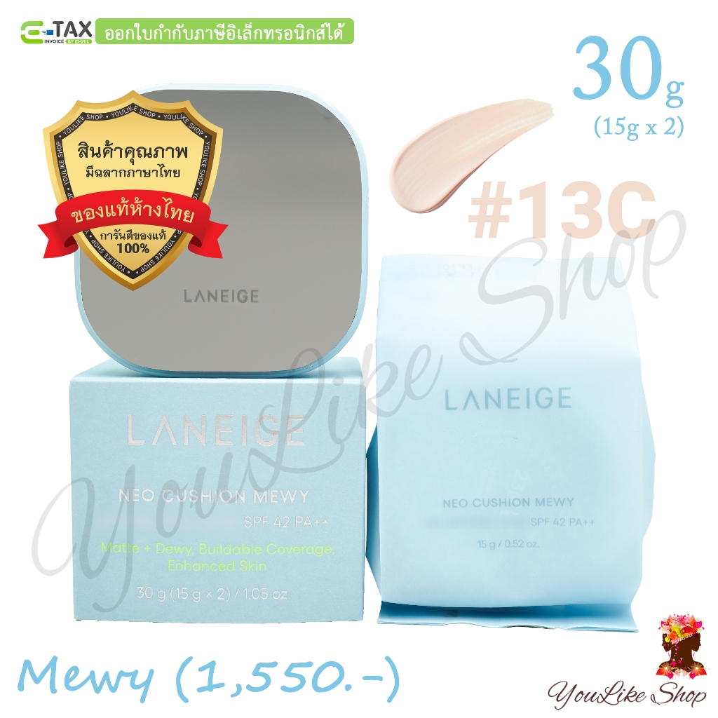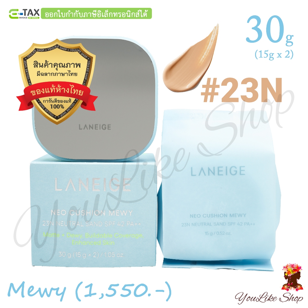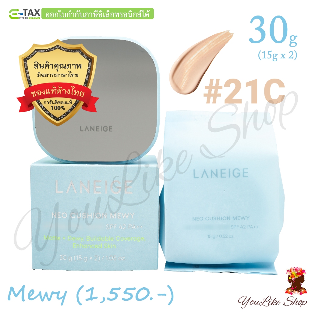 Laneige Neo Cushion Mewy SPF 42 PA++ (15 g x 2) คุชชั่นกึ่งแมตต์ พร้อมล็อกความชุ่มชื้นยาวนาน [13C 17N 21W 21C 23N 25C]