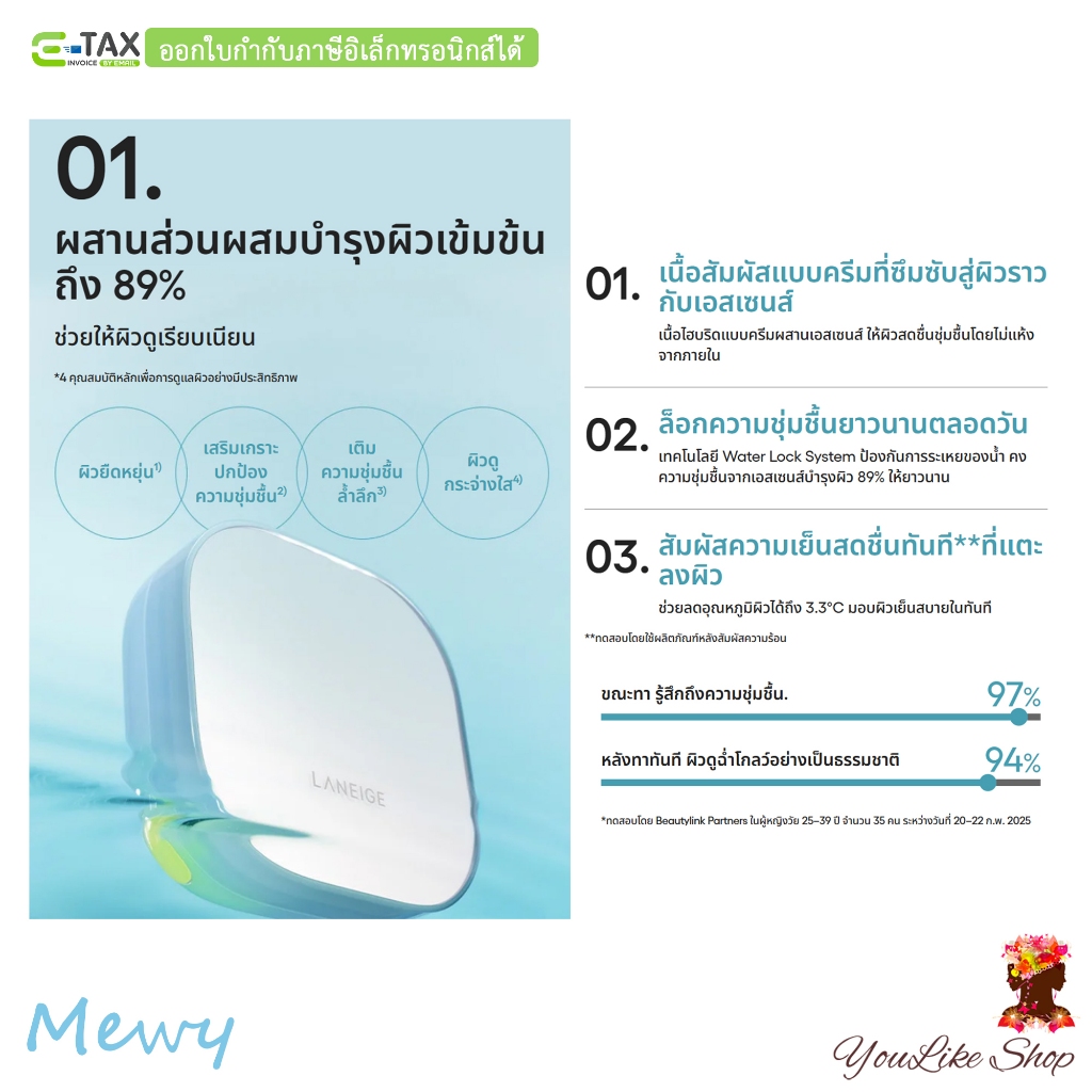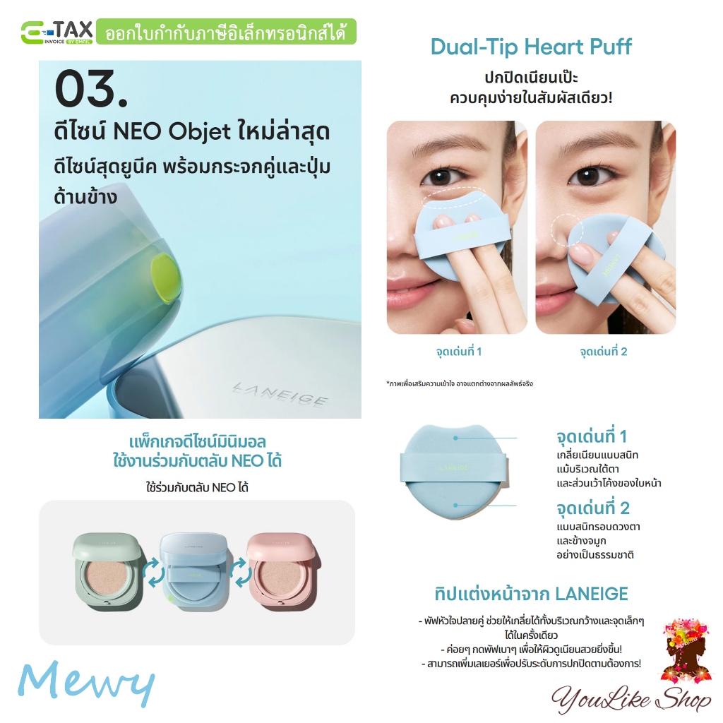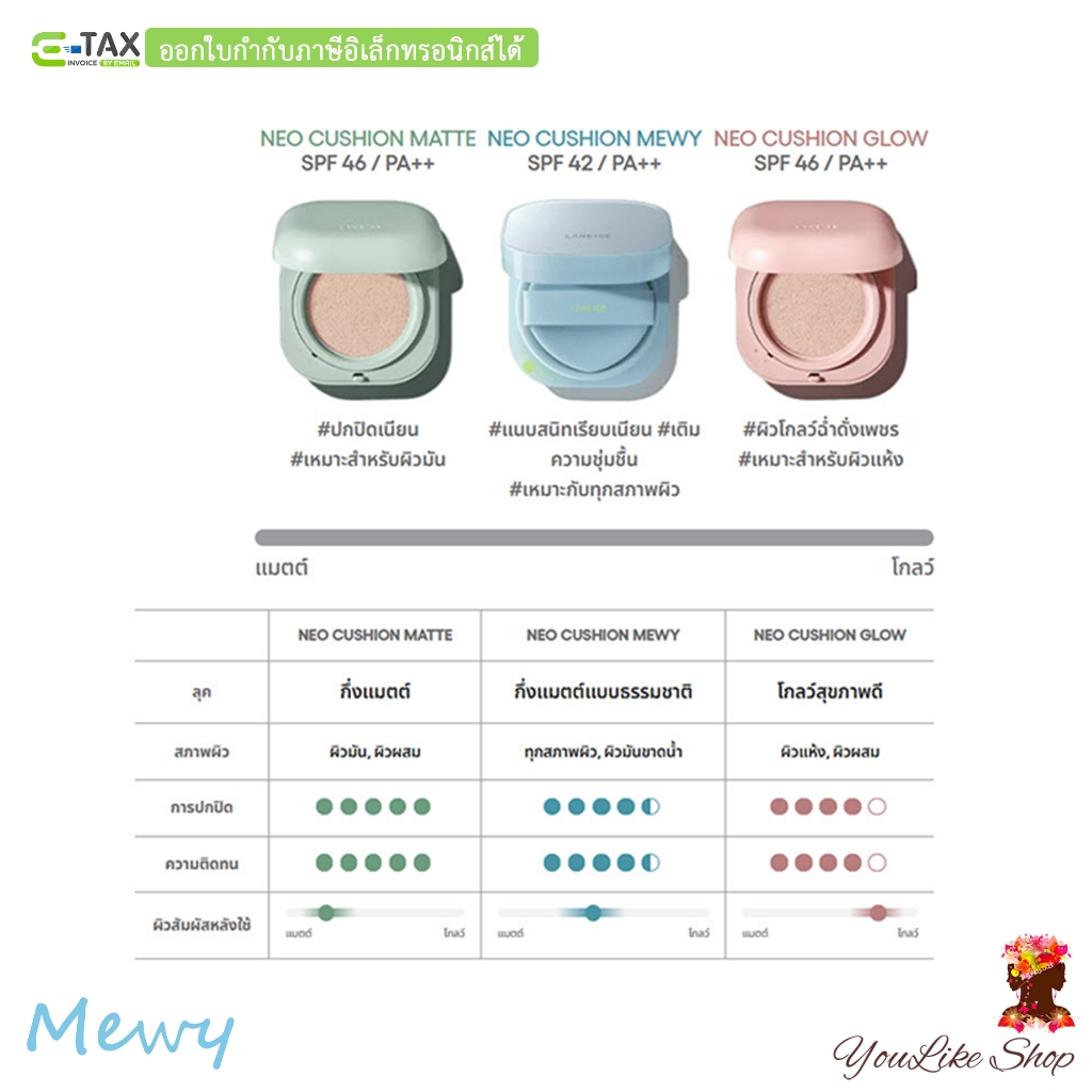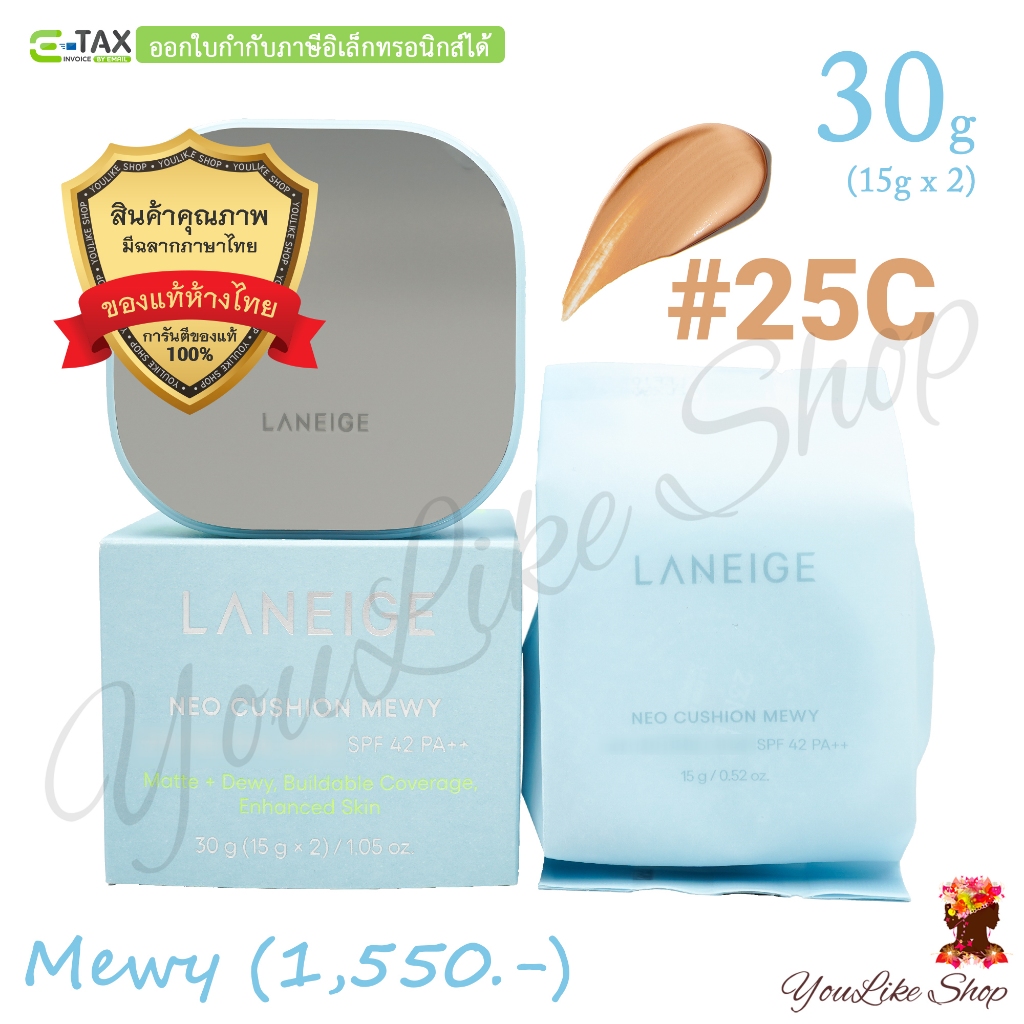 Laneige Neo Cushion Mewy SPF 42 PA++ (15 g x 2) คุชชั่นกึ่งแมตต์ พร้อมล็อกความชุ่มชื้นยาวนาน [13C 17N 21W 21C 23N 25C]