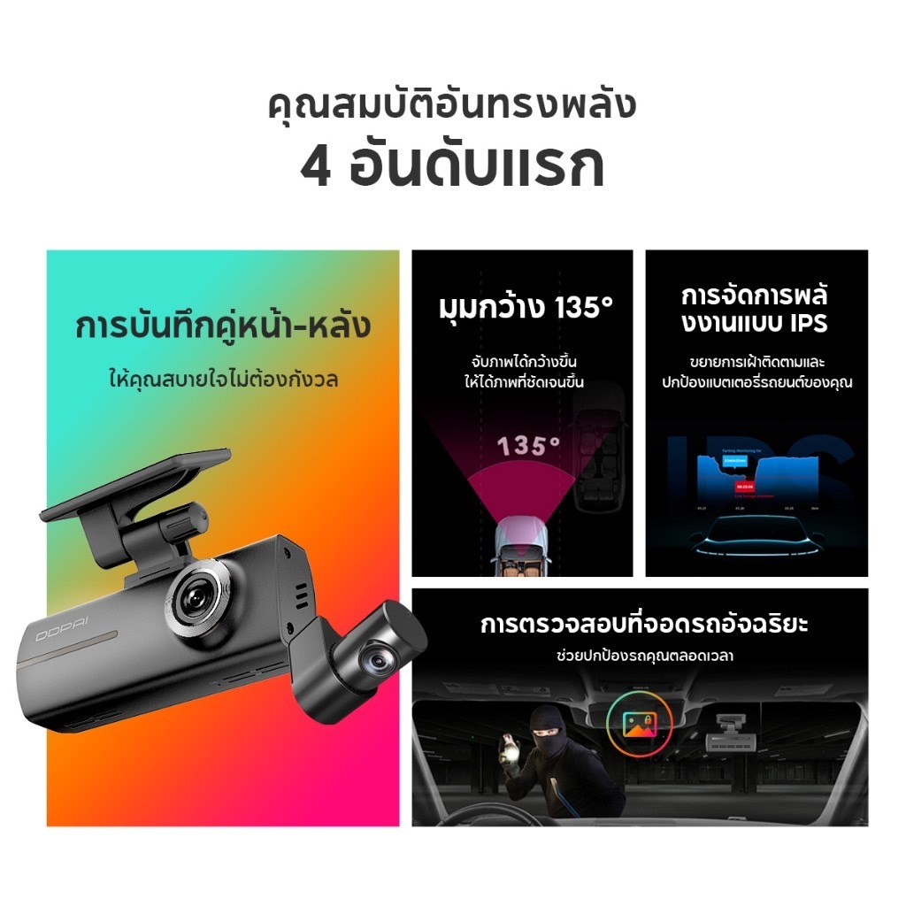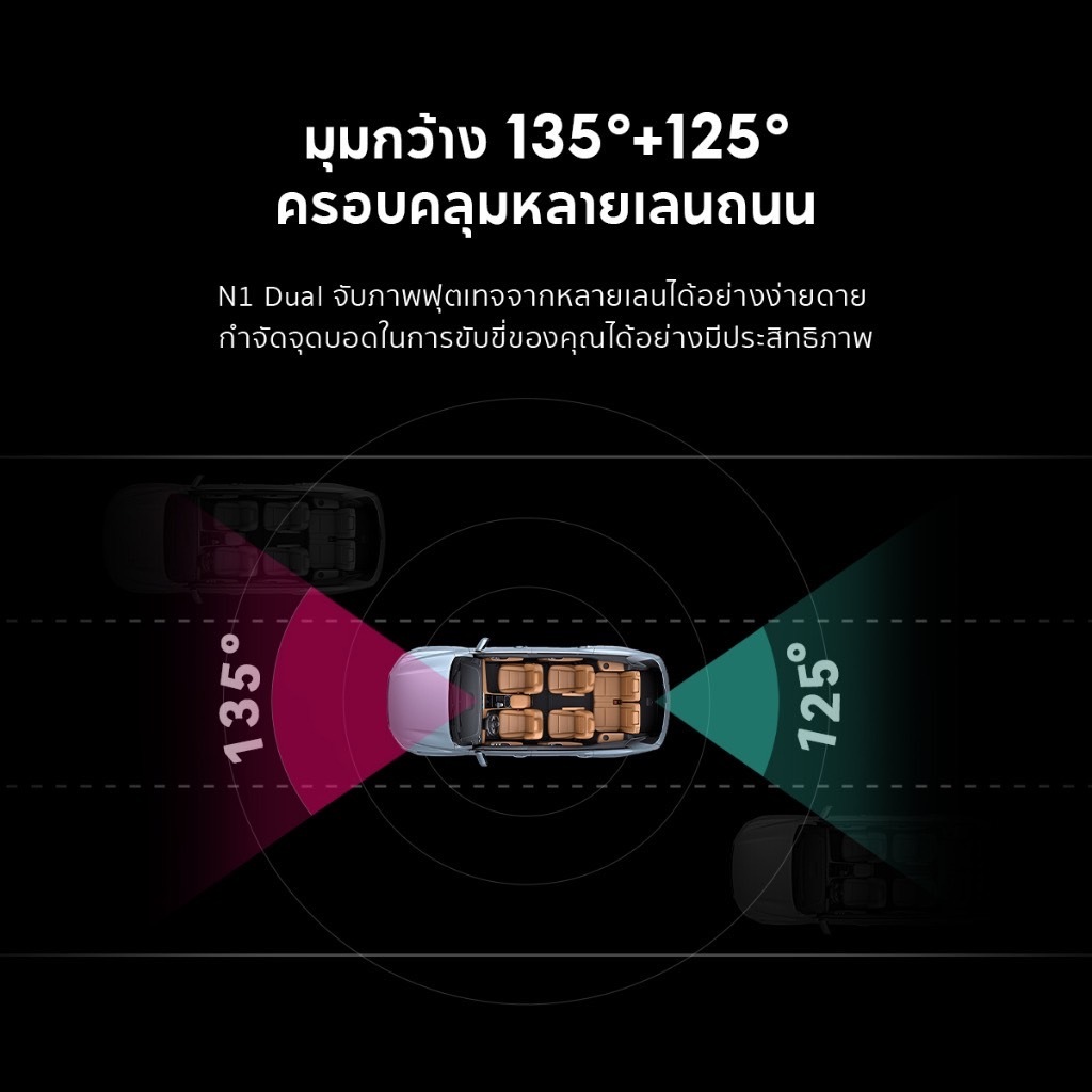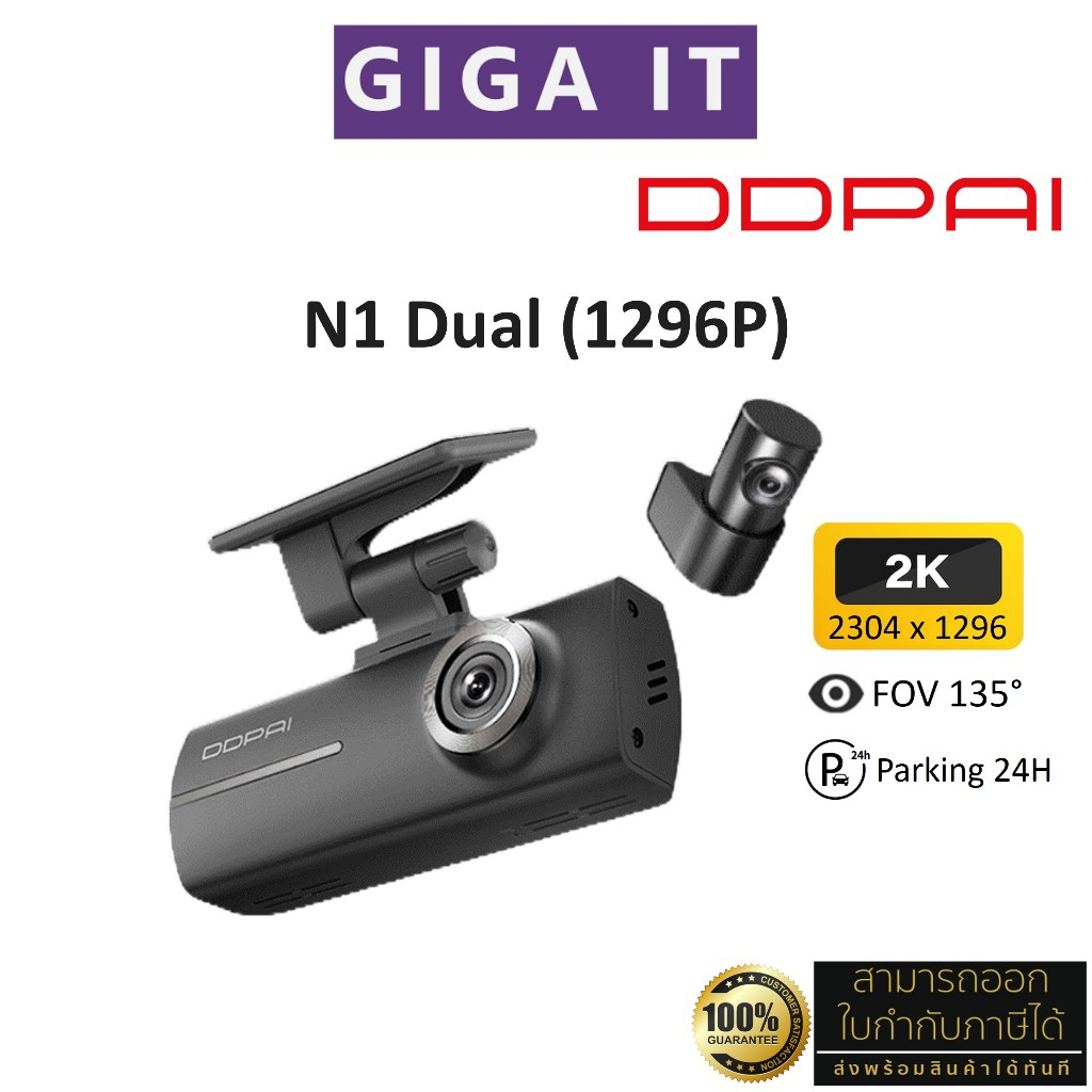 DDPAI N1 Dual Dash Cam กล้องติดรถยนต์หน้า + หลัง (1296P + 1080P, มุมมอง 135°, F1.8) รับประกันศูนย์ไทย 1 ปี