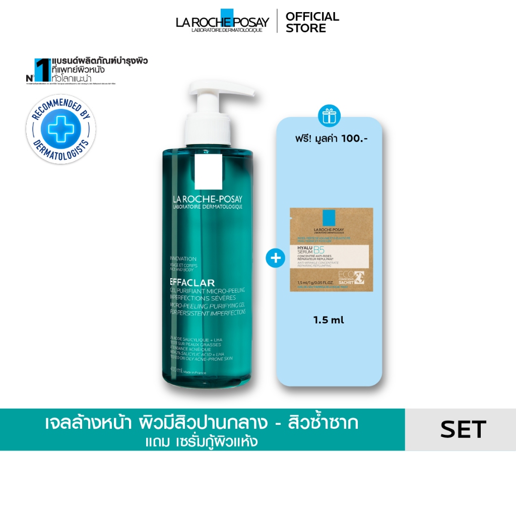[ฟรี 1 ชิ้น] ลา โรช-โพเซย์ La Roche-Posay Effaclar Micro-Peeling Gel เจลล้างหน้าผิวเป็นสิว 400ml. + Hyalu B5 Serum 1.5ml