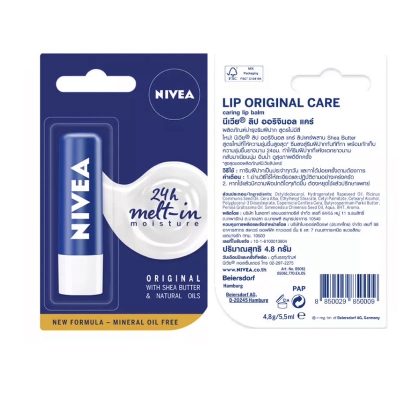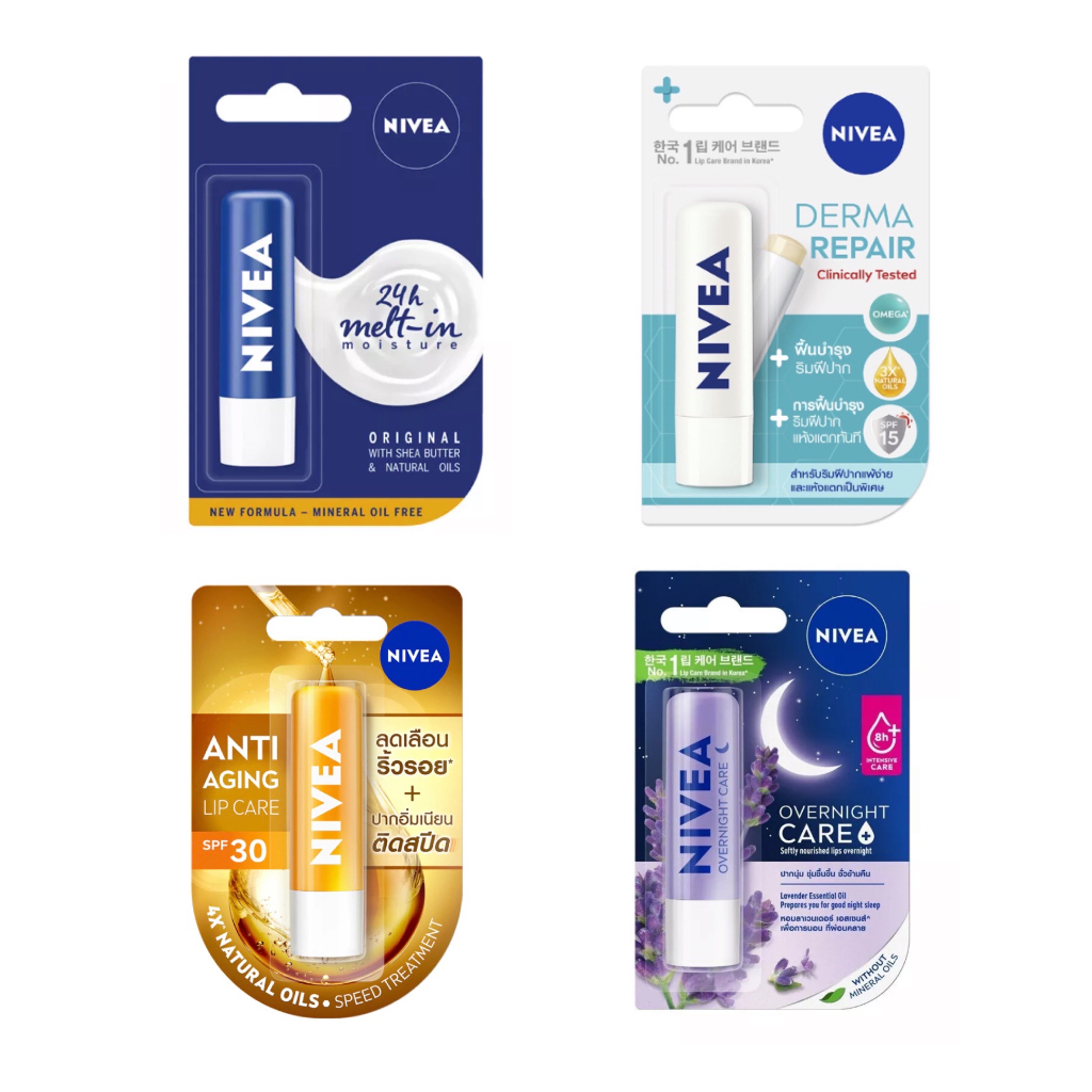 Nivea lip care original,NIVEA Derma Repair Lip Care,NIVEA Lip Overnight Care 4.8g.นีเวีย ลิปแคร์ ลิปมัน บำรุงริมฝีปาก
