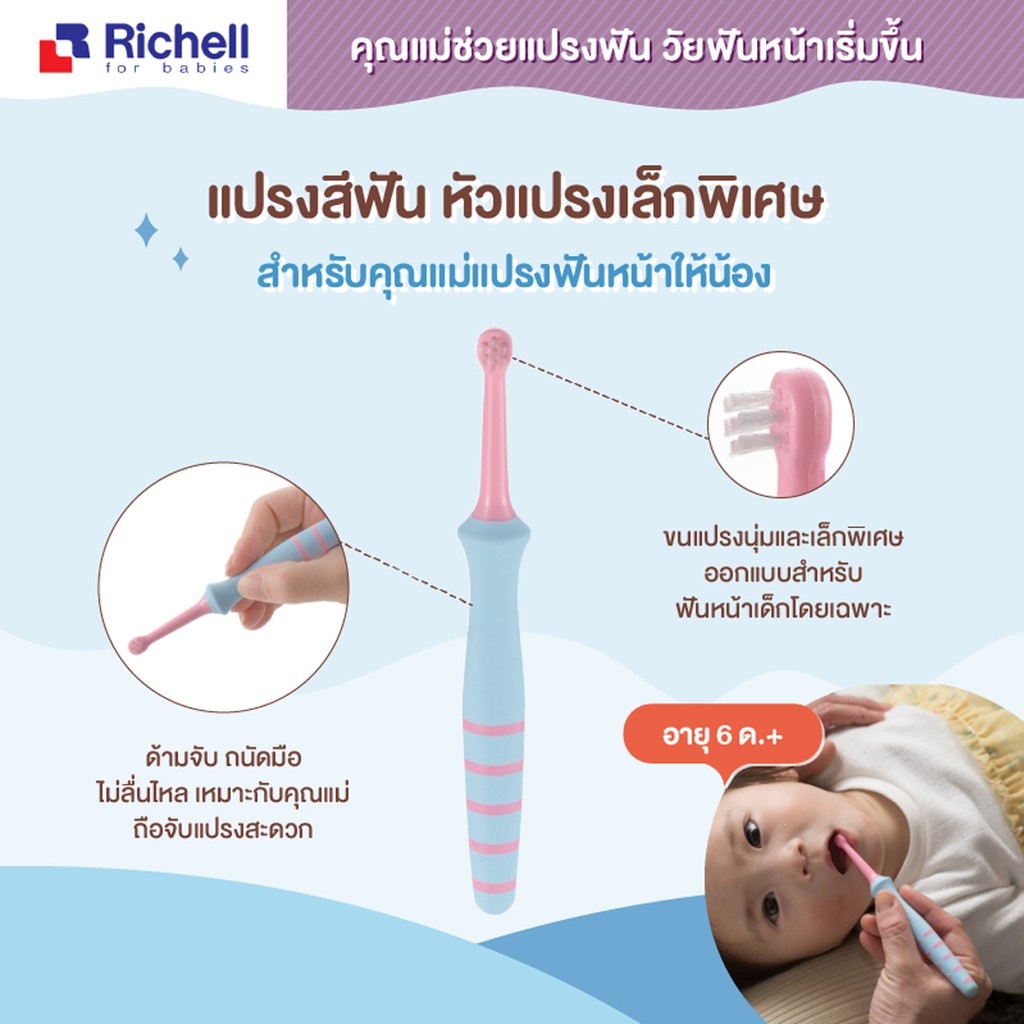 Richell แปรงสีฟันเด็ก ปลายซิลิโคน ขนแปรงไ นลอน (id:201021, ด้ามสีฟ้าชมพู) 6M+ คุณแม่ช่วยแปรงค่ะ