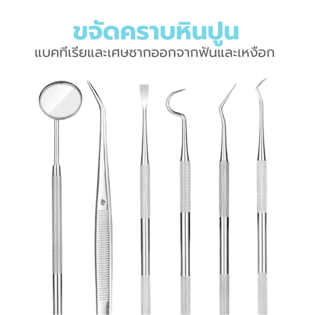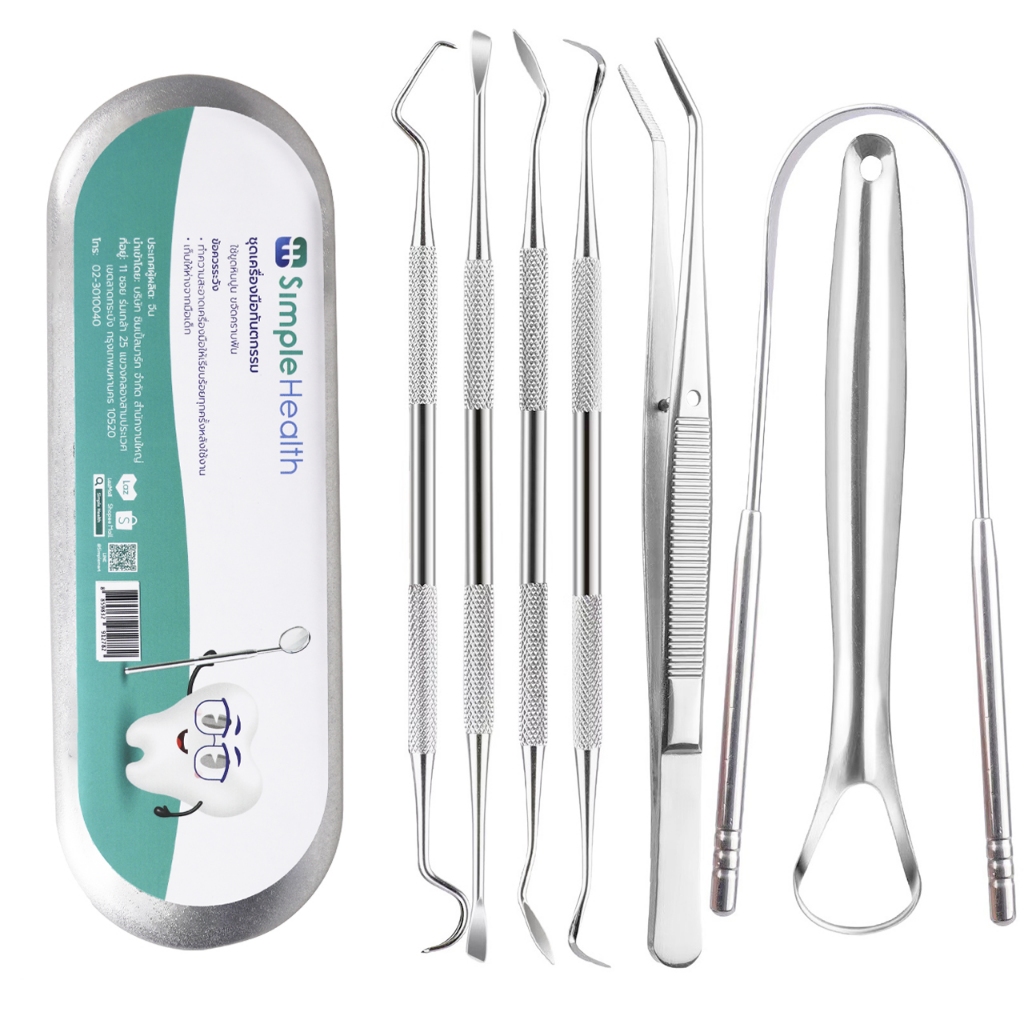 อุปกรณ์ทำความสะอาดฟัน ชุดขูดหินปูน ชุดเครื่องมือทันตกรรม Clean tooth สำหรับแซะฟัน ขูดลิ้น พร้อมกล่อง simplethailand