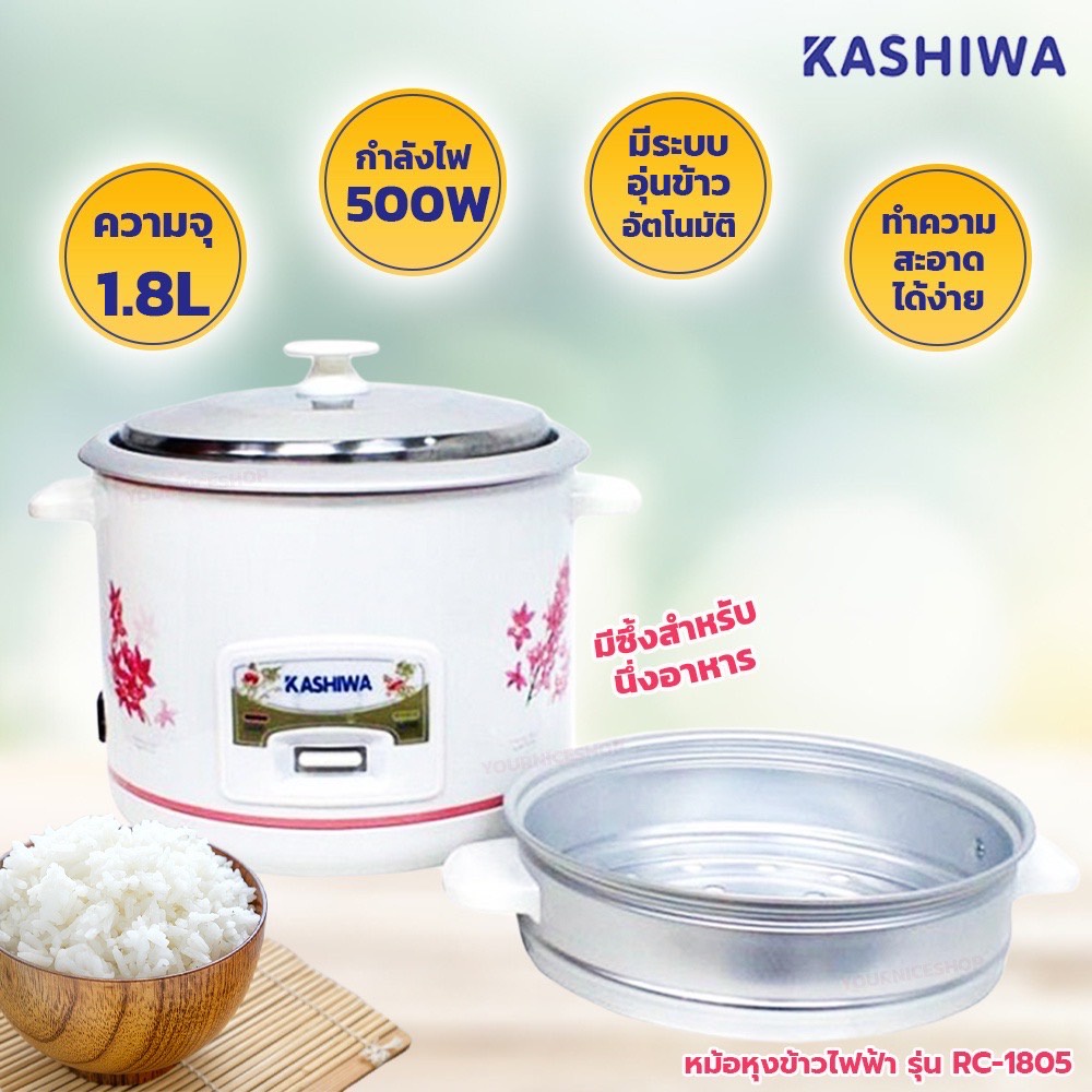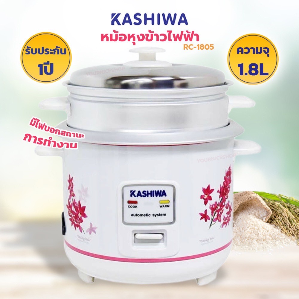 Kashiwa คาชิว่า หม้อหุงข้าวไฟฟ้า 1 ลิตร / 1.8 ลิตร รุ่น RC-114 / RC-106 / RC-1805 *รับประกัน 1 ปี* คละแบบ