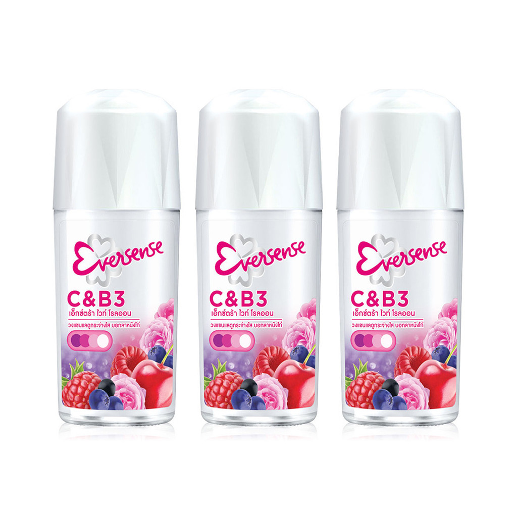 Eversense Super Fruit Roll On Extra White Mixed Berry [45ml x 3pcs] โรลออนระงับกลิ่นกาย.