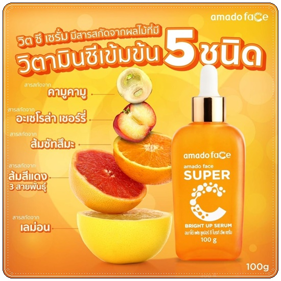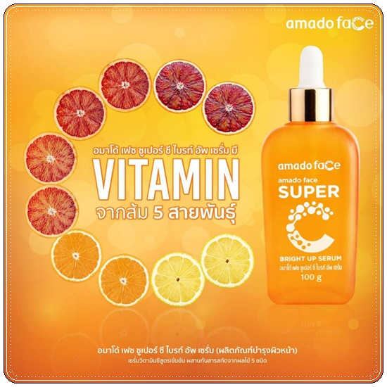 Amado Face Super C Bright Up Serum อมาโด้ เซรั่ม ซุปเปอร์ ซี [100 กรัม][1 กล่อง] เซรั่มวิตามินC ผิวกระจ่างใส เซรั่มวิตซี