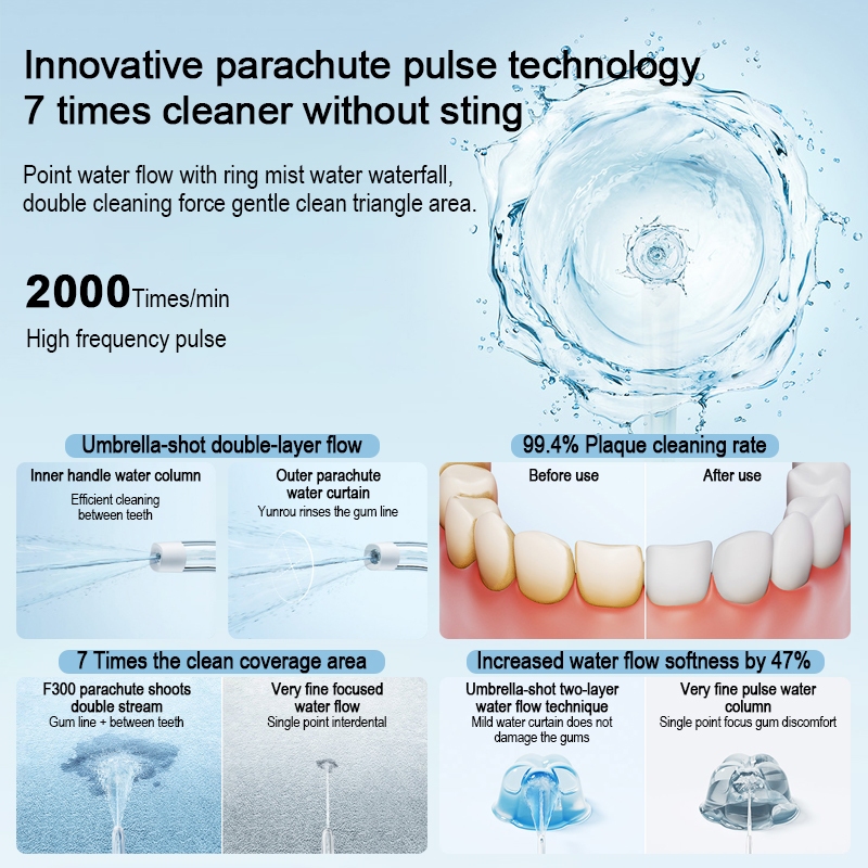 Xiaomi Mijia Oral Irrigator Dental Teet Water Flosser F300 เครื่องล้างฟันพกพา 240ML นวัตกรรมพัลส์กระเจิง 4 โหมด 3 หัวฉีด