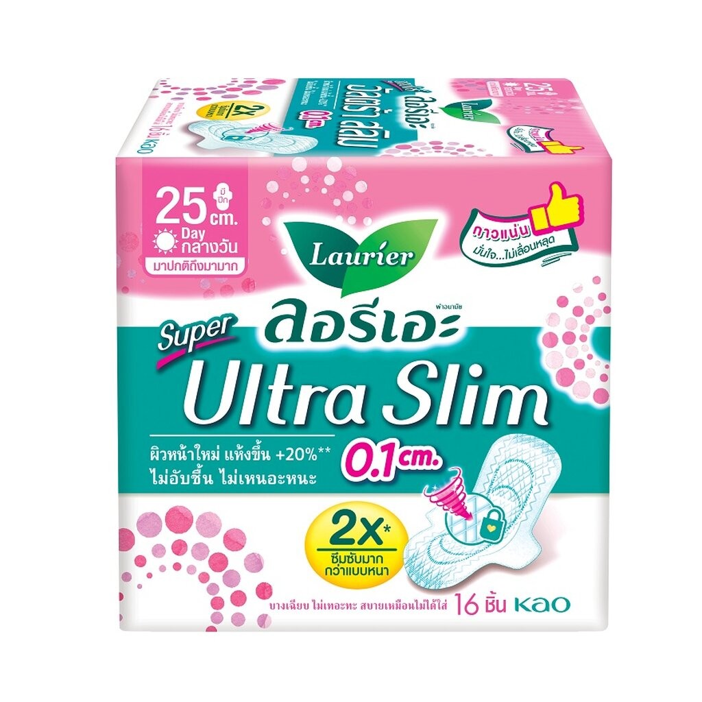 Laurier ลอริเอะ ผ้าอนามัย ซูเปอร์ อัลตร้า สลิม 25 ซม. มีปีก 16 ชิ้น