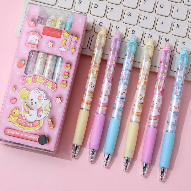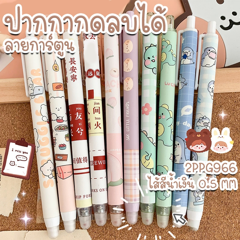 ปากกาลบได้แบบกดลายการ์ตูน ไส้สีน้ำเงิน ปากกาแฟชั่น✔️เครื่องเขียน ปากกาเจลลบได้ ปากกาเจล แบบกด