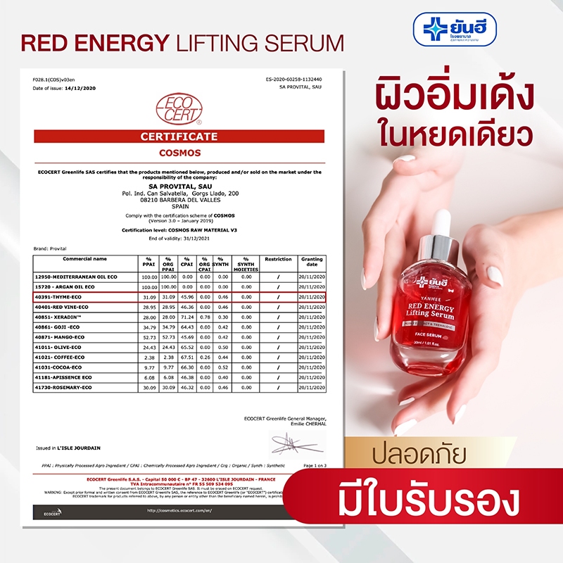 Yanhee Red Energy ยันฮี เซรั่ม เรด เอเนอร์จี้ ยกกระชับ ผิวหน้า ให้เด้ง เต่งตึง ลดริ้วรอย หน้าใส