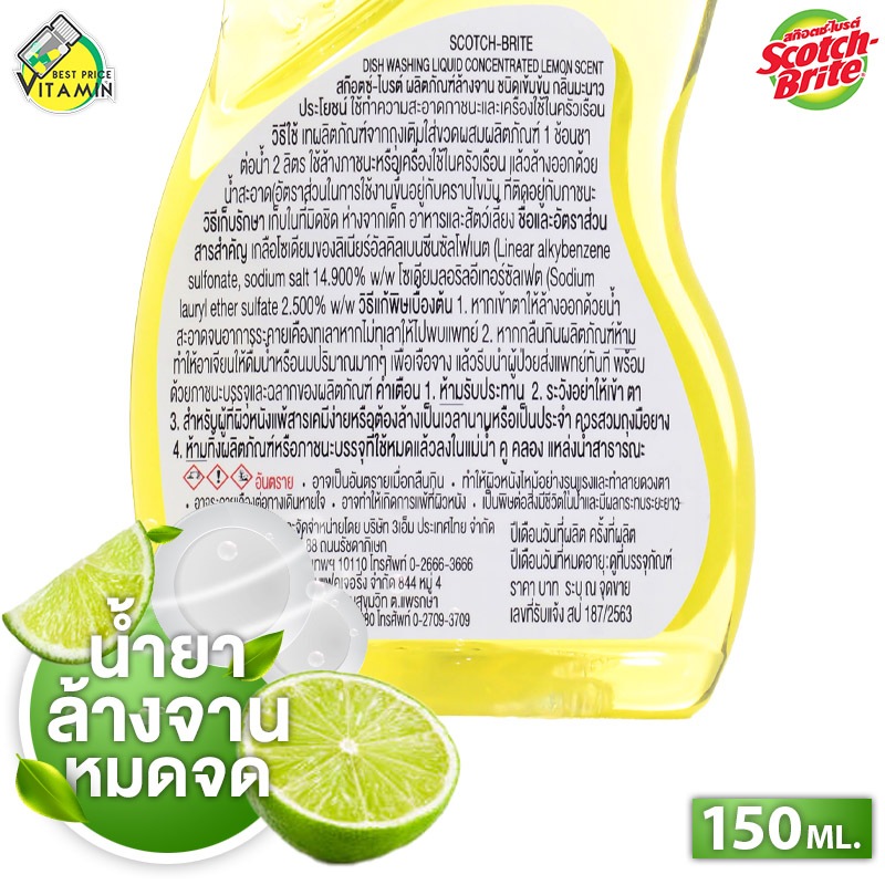 [ของแท้] Scotch Brite Dish Washing Liquid สก๊อตช์ ไบรต์ น้ำยาล้างจาน กลิ่นมะนาว [150 ml.] น้ำยา ล้างจาน เข้มข้น หมดจด
