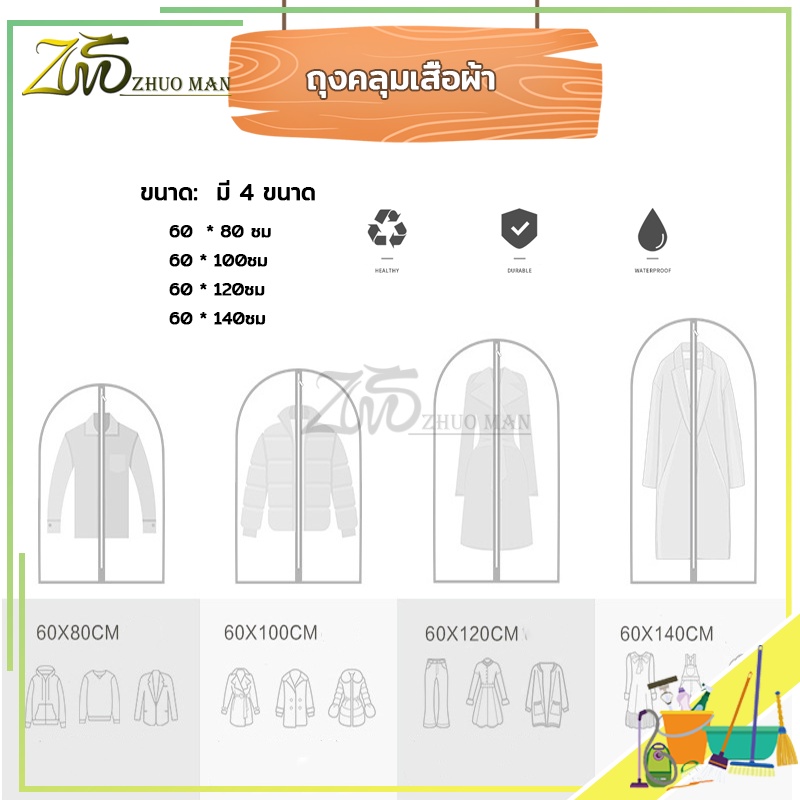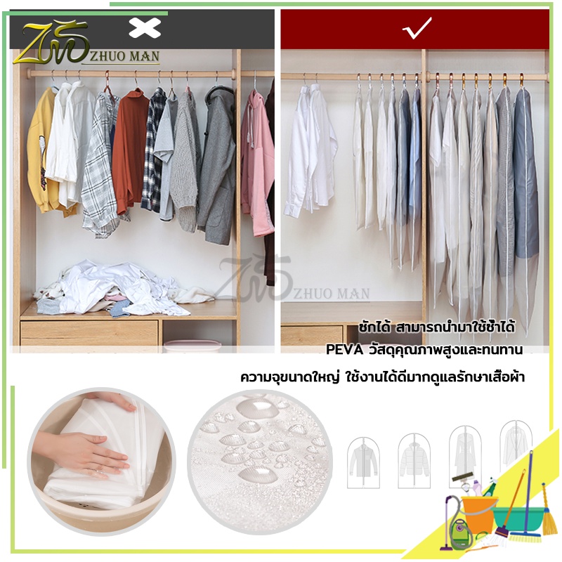 ถุงคลุมเสื้อผ้า ถุงใส่เสื้อผ้า ป้องกันฝุ่นเกาะเสื้อผ้าที่เก็บไว้ ถุงคลุมเสื้อผ้ากันฝุ่น ใช้ซ้ำได้ มีซิป ง่ายต่อการใช้งาน