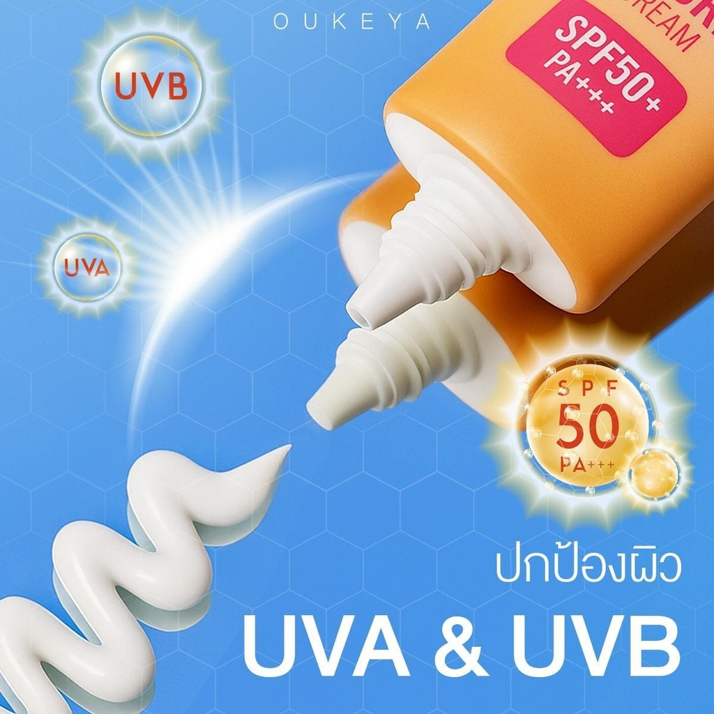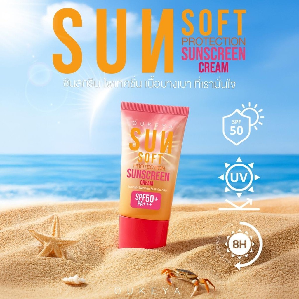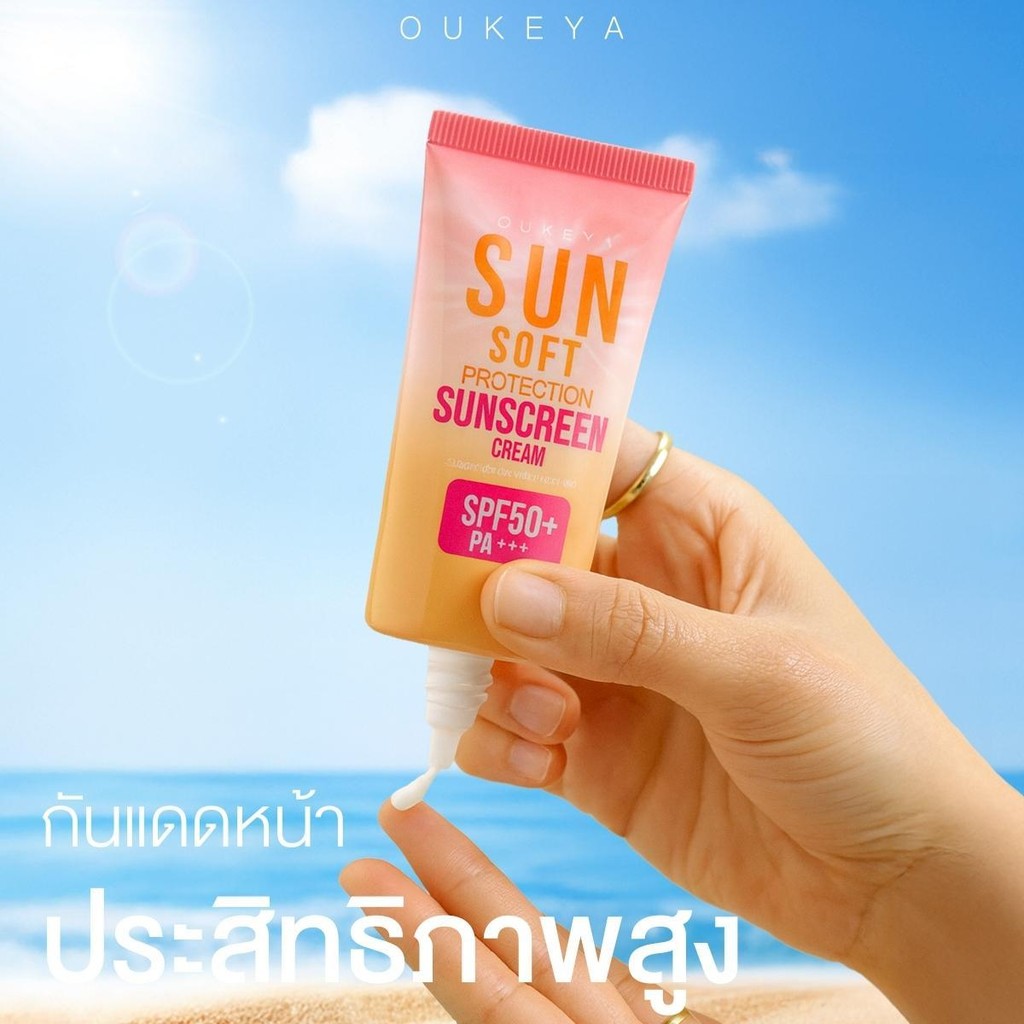 OUKEYA SUNSOFT PROTECTION SUNSCREEN CREAM โอกิยะ ครีมกันแดดบำรุงผิวหน้า SPF50+ PA+++ กันแ ดดสูตรอ่อนโยน เนื้อบางเบา