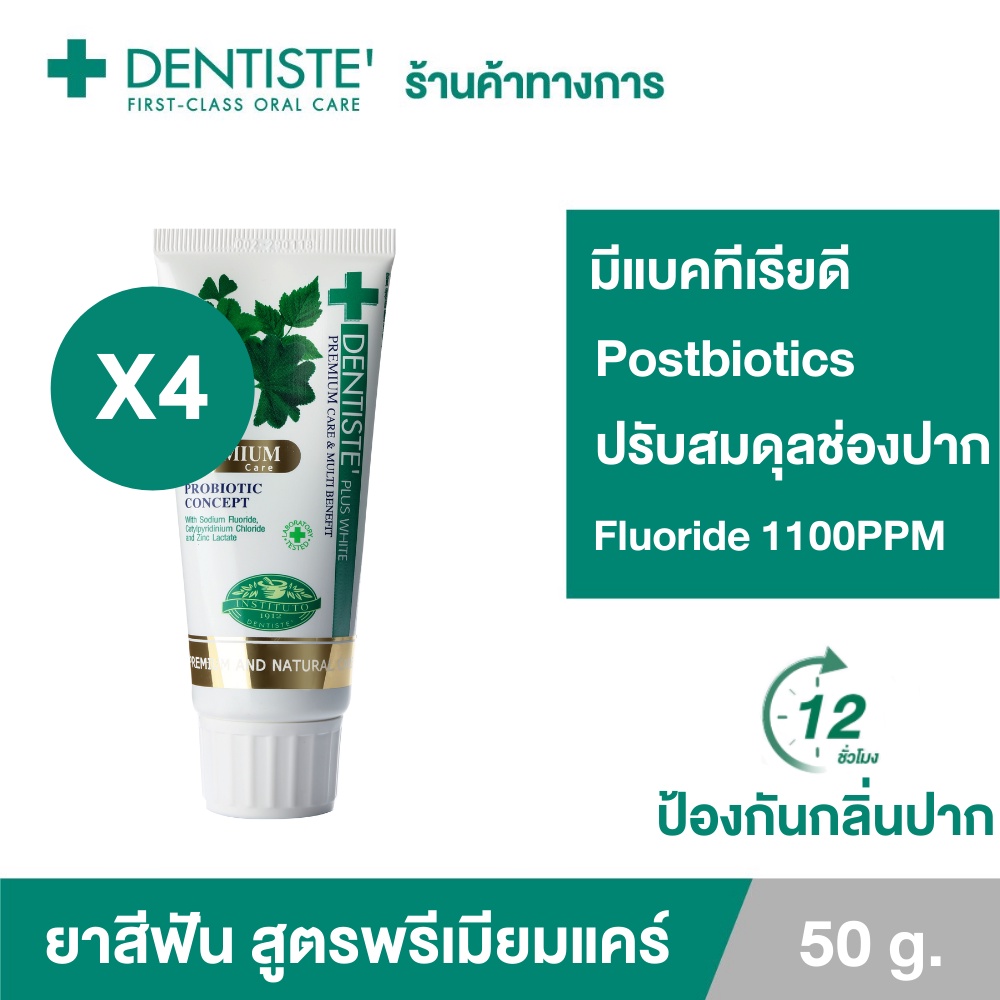 Dentiste' Premium Care ToothpasteTube ยาสีฟันสูตรพรีเมี่ยมแคร์ ปรับสมดุลแบคทีเรีย หลอดขนาด 50กรัม เดนทิสเต้ (แพ็ค4ชิ้น)