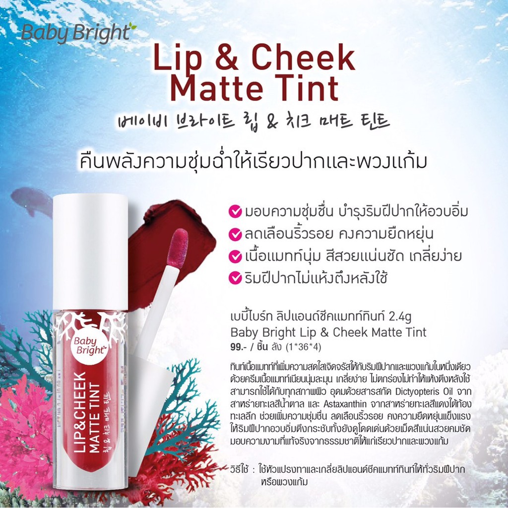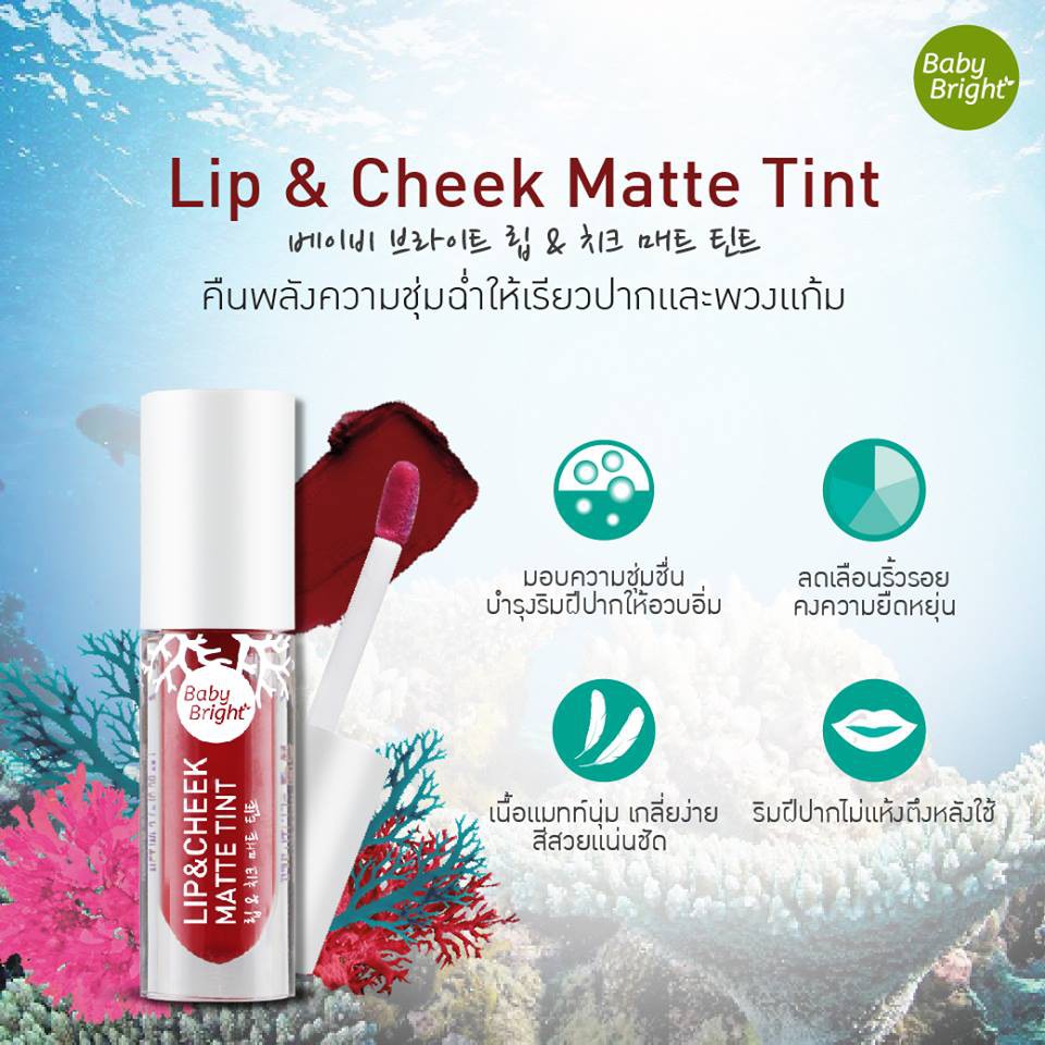 【สีใหม่ 21-30】ลิปแมทท์ เบบี้ไบร์ท【ปาก+ตา+แก้ม】Baby Bright Lip & Cheek Matte Tint 2.4g #BLIP01