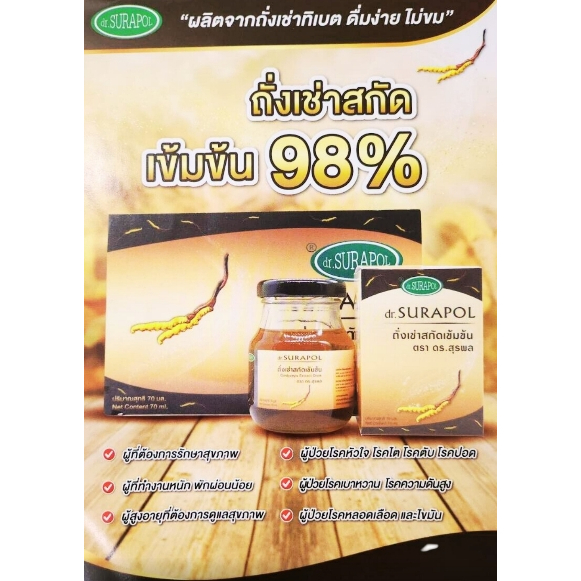 Dr. Surapol Cordyceps Extract Drink น้ำถั่งเช่าสกัดเช้มช้น ตรา ดร.สุรพล (70 ml x 6 Bottles) Supurra