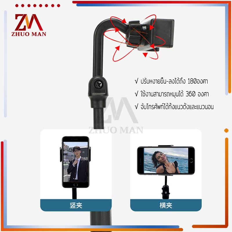 ที่จับมือถือ ที่วางโทรศัพท์ ขาตั้งไลฟ์สด ปรับสูงต่ำได้ ปรับหมุนได้ 360องศา ทนทาน หมุนล็อค ล็อคแน่นไม่หลุดง่าย ติดตั้งง่า