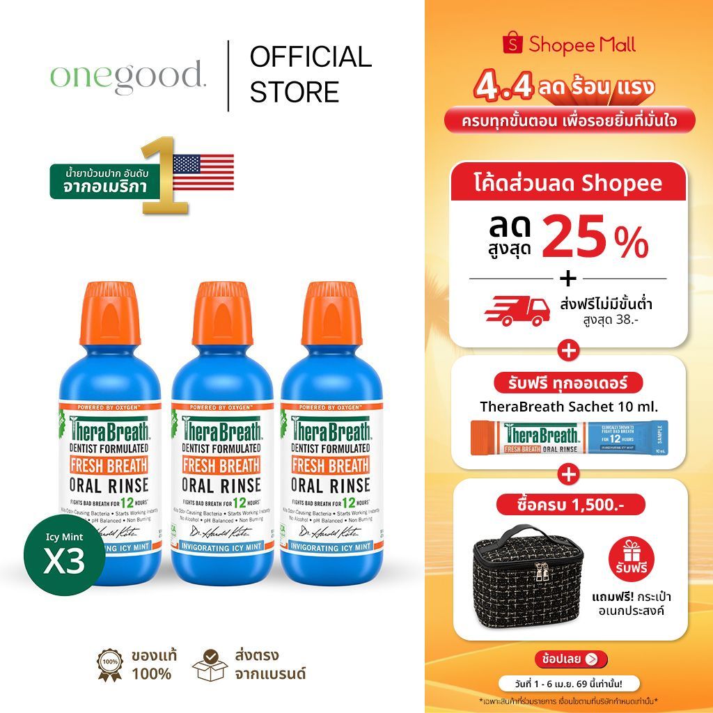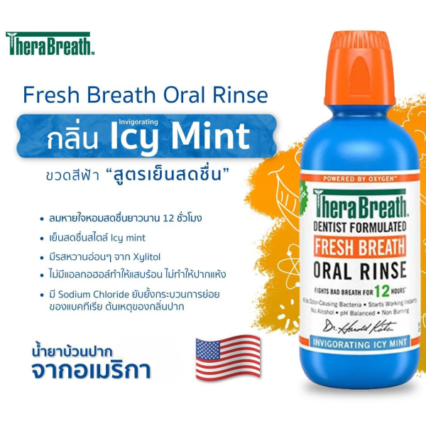 TheraBreath Fresh Breath Icy Mint [x3 สีฟ้า] | น้ำยาบ้วนปาก สูตรเย็นชื่นใจ ไม่แสบปาก 473 ml