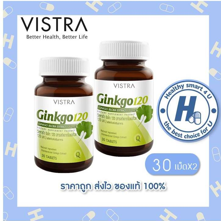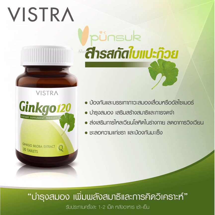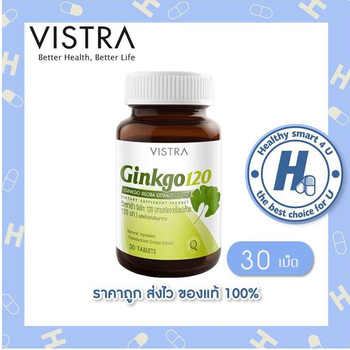 🔥(ของแท้ร้านยา)🔥🔥lot ใหม่ พร้อมส่ง🔥VISTRA Ginkgo 120 mg 30 tabs วิสทร้า แปะก๊วย กิงโกะ 30 เม็ด สารสกัดใบแป๊ะก๋วย เสริมคว