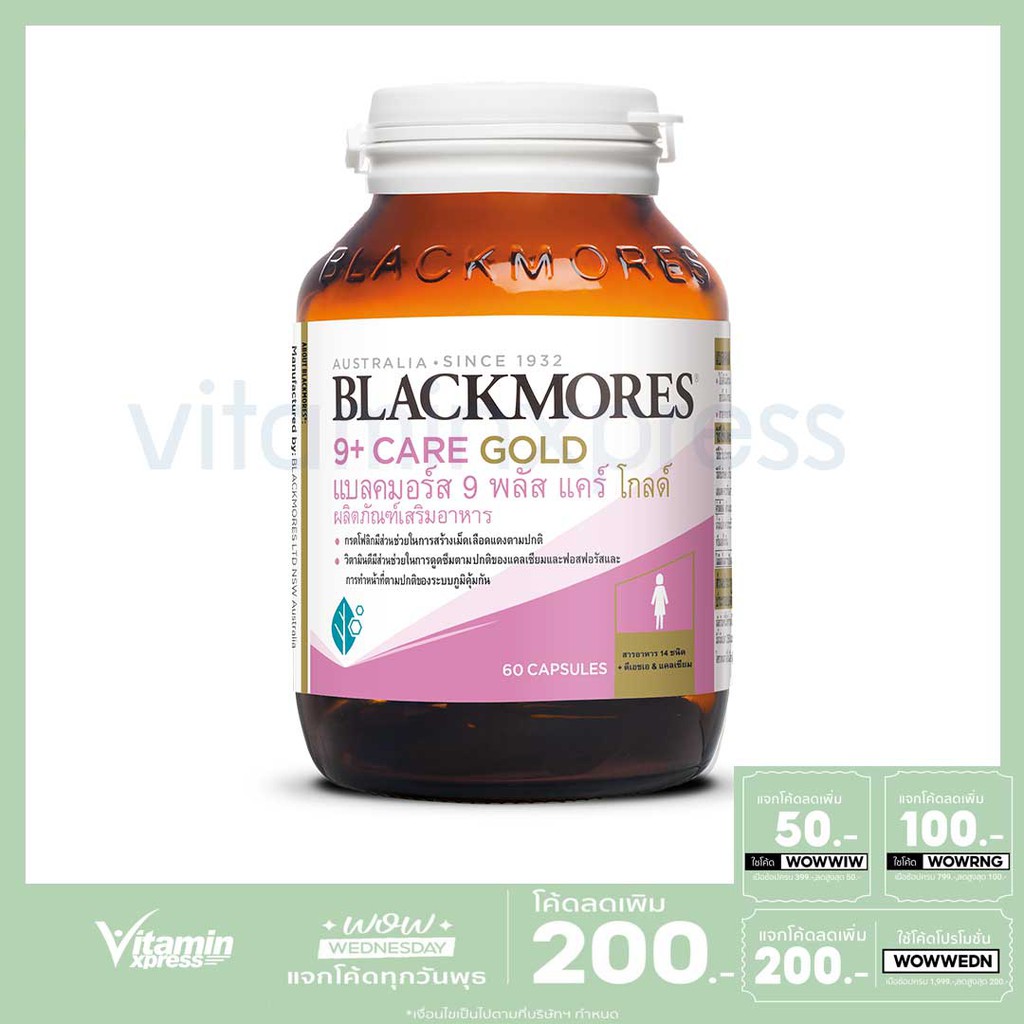 Exp 04/27 Blackmores 9+ care gold 60 เม็ด แบลคมอร์ส 9 พลัส แคร์ โกลด์ โฟลิก วิตามินดี ดูดซึมแคลเซียม