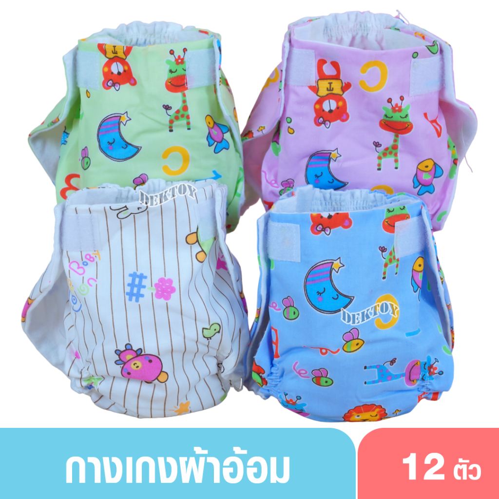 12 ผืน Gold Baby กางเกงผ้าอ้อมสาลูซักได้เป้าหนาขาจั๊ม แรกเกิด - 7 กก.