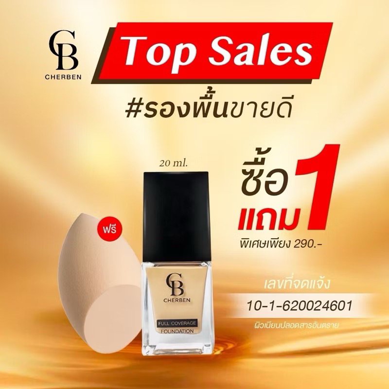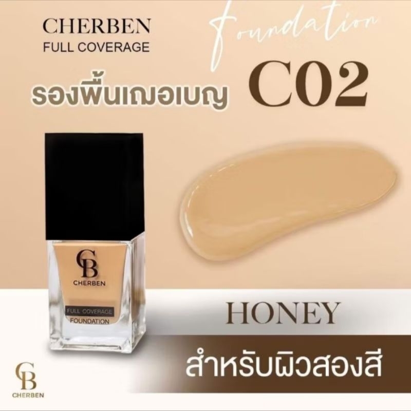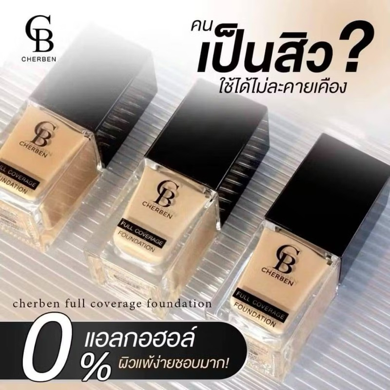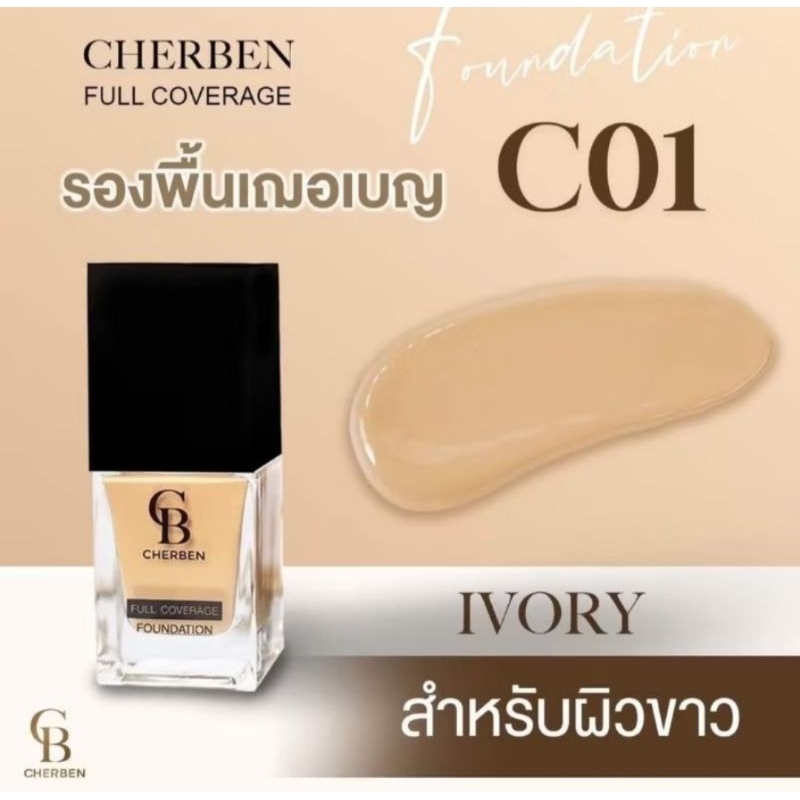 ส่งฟรี/มีไลฟ์ ลด50% Cherben Foundation Full Coverage 20g รองพื้นเณอ เบญ SPF50 PA+++