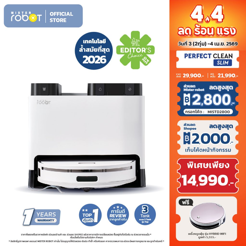 Mister Robot หุ่นยนต์ดูดฝุ่น ถูพื้น มีระบบซักผ้าอัตโนมัติ รุ่น Perfect Clean Slim มีโปรซื้อคู่สุดคุ้ม!!