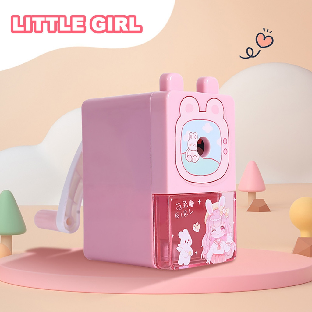 กบเหลาดินสอกึ่งอัตโนมัติ คุณสามารถหมุนได้ด้วยมือเมื่อไม่มีไฟฟ้า รูปทรงการ์ตูนสำหรับเด็กป้องกันการตกและทนทาน