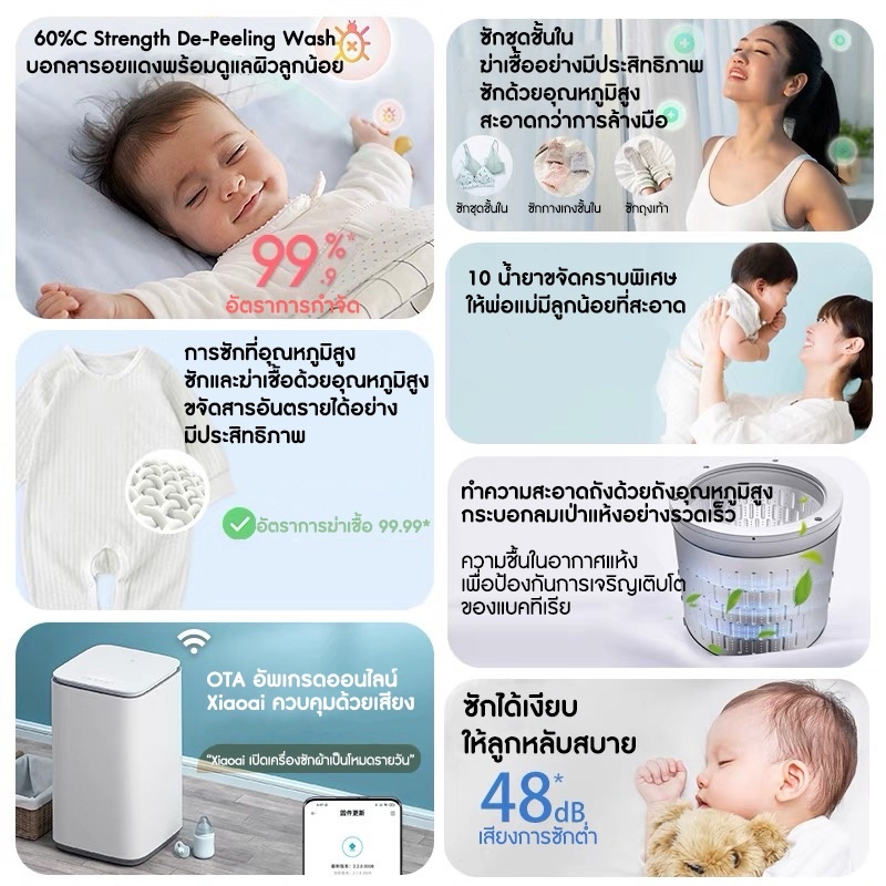 Mijia Smart Washing Machine pro 3Kg Sterilize Dehydrator Laundry Machineเครื่องซักผ้า ซักชุดเด็ก ซักชุดชั้นใน