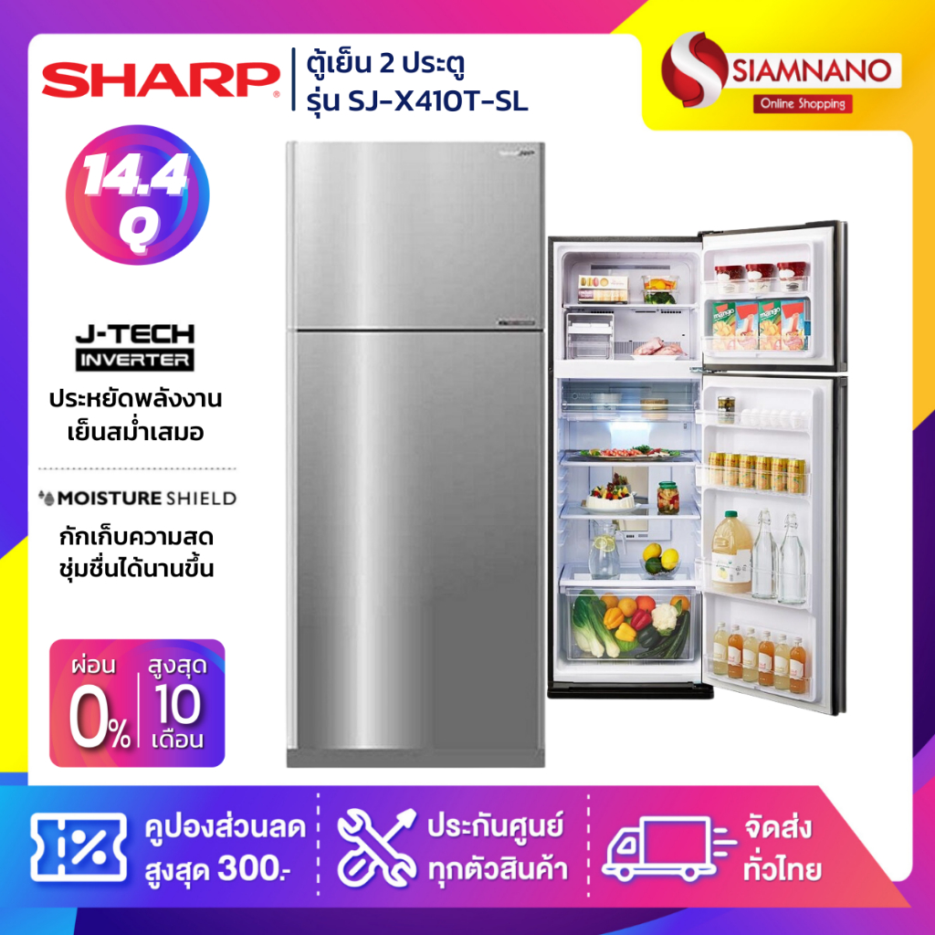 ตู้เย็น Sharp 2 ประตู Inverter ขนาด 14.4 Q รุ่น SJ-X410T-SL ( รับประกันสินค้านาน 10 ปี )