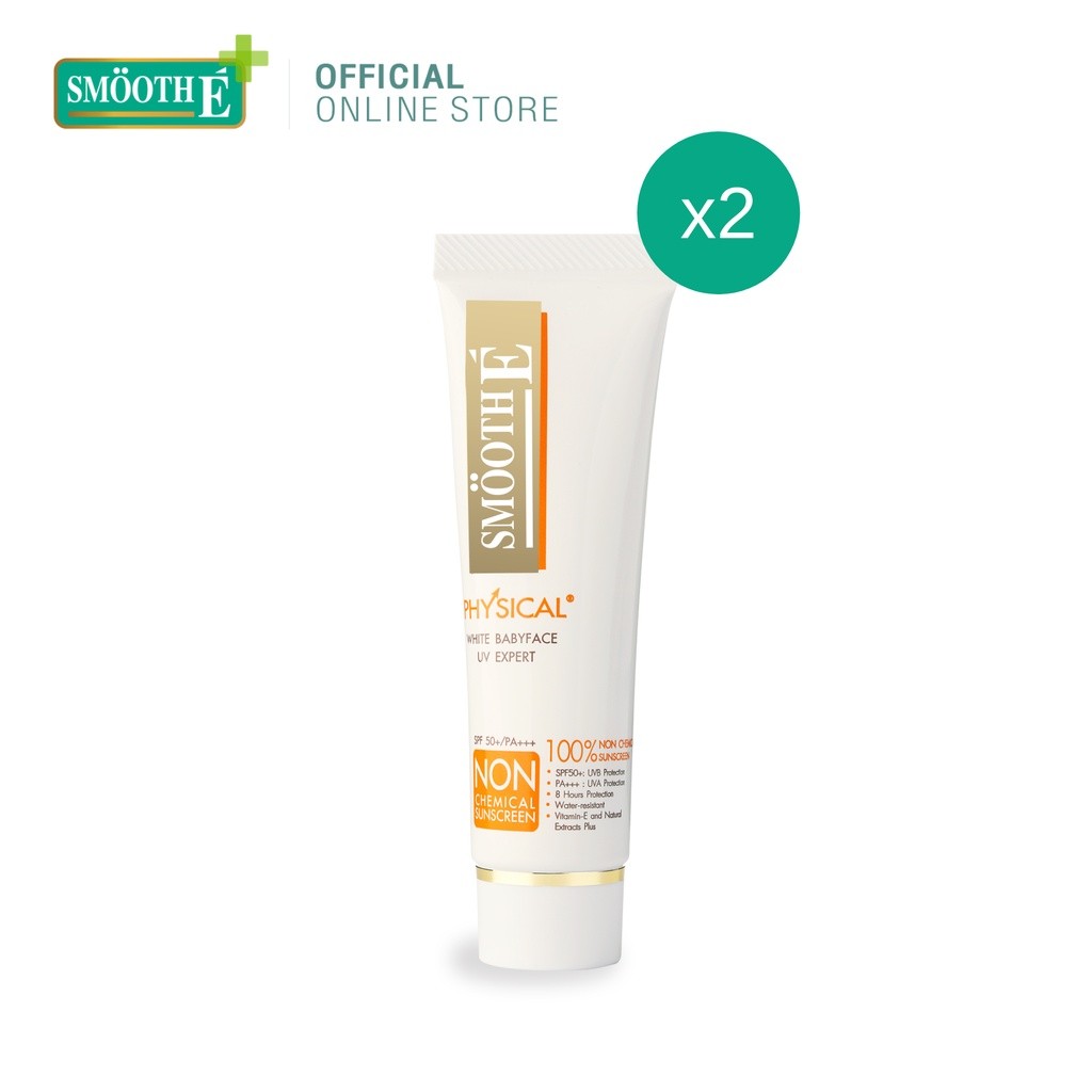 [แพ็ค 2] Smooth E Physical White Babyface (White) SPF50 UV Expert ครีมกันแดด สูตรอ่อนโยน ปกป้องผิวยาวนาน 8 ชม สีขาว 15g.