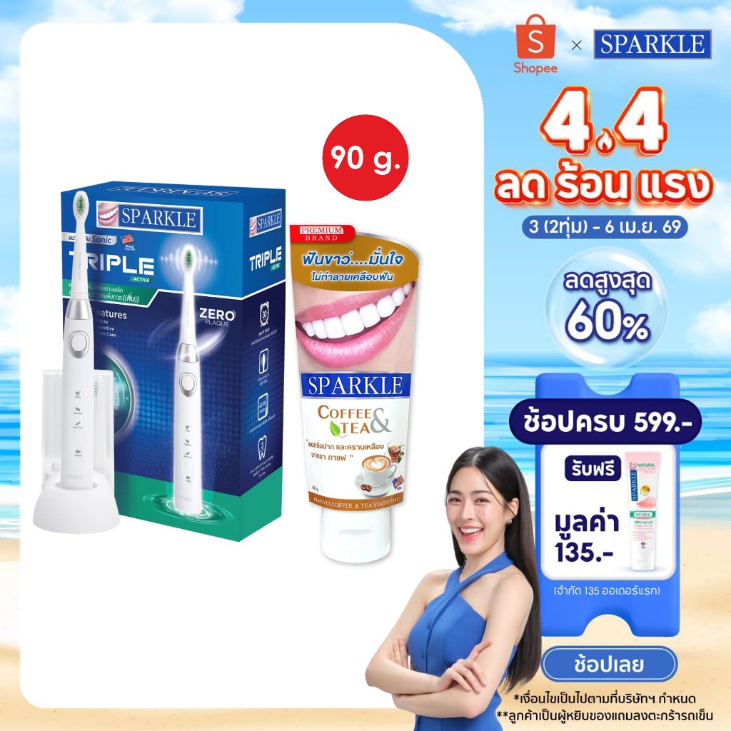 [Exclusive Set] SPARKLE Sonic แปรงสีฟันไฟฟ้าTriple Active +ยาสีฟัน Coffee & Tea 90 กรัม (10SK00086+10SK00038)