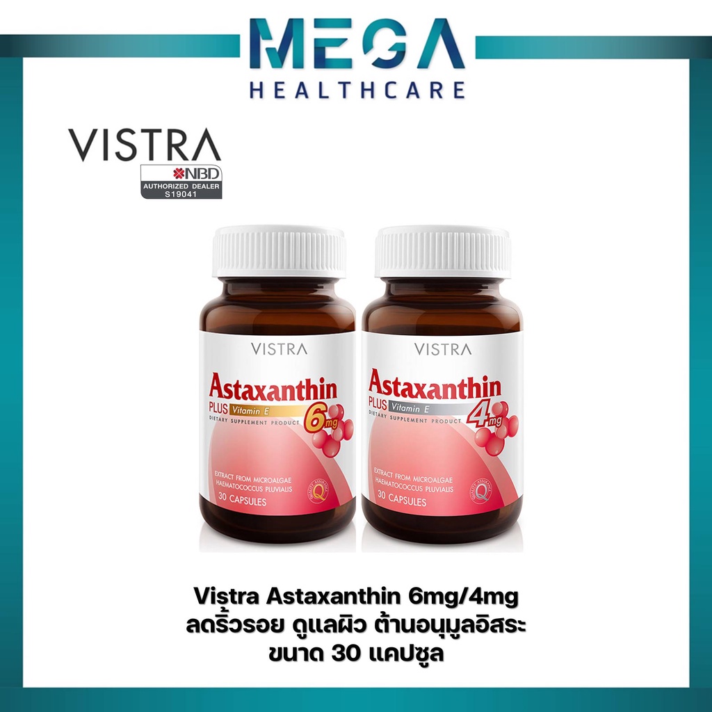 Vistra Astaxanthin Plus E 30Capsules เลือกซื้อได้ค่ะ 4 , 6 mg วิสตร้า แอสต้าแซนติน 30แคปซูล