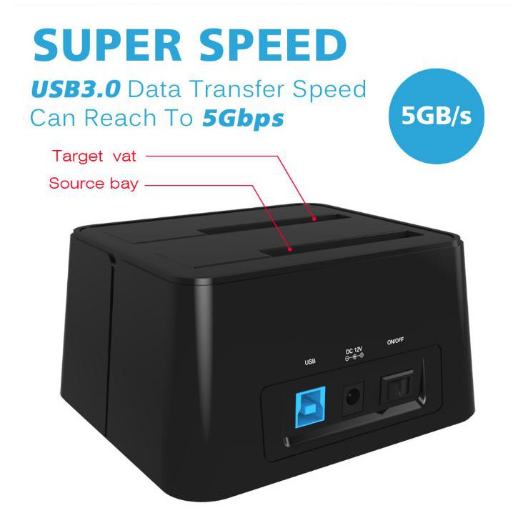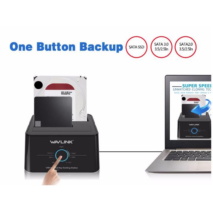 Wavlink 2.5"3.5" USB 3.0 Docking Station Offline Clone Dual Bay External Hard Drive Enclosure For 2*8 TB